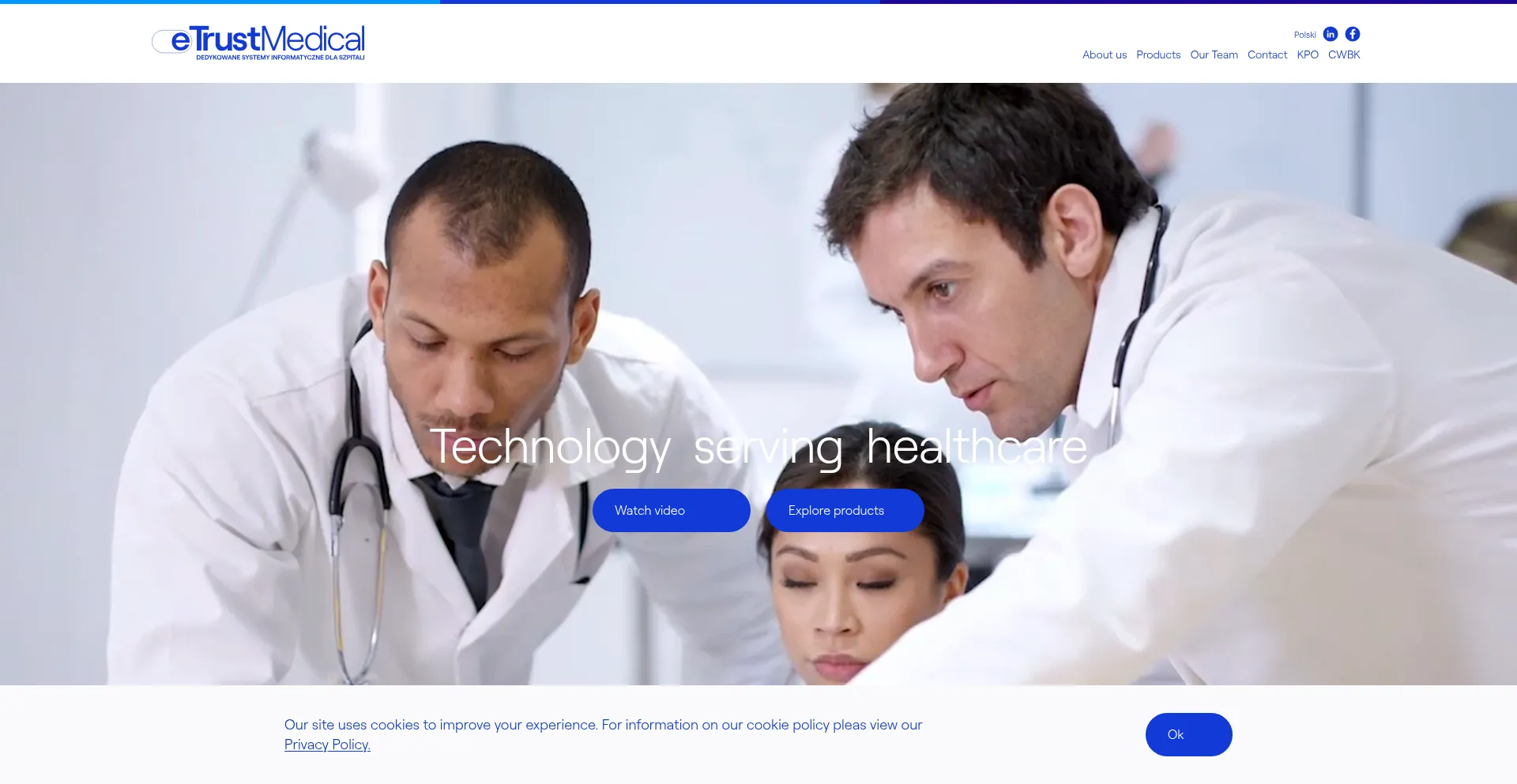 The etrustmedical.com website uses Google Tag Manager to add and update tracking tags on its website.