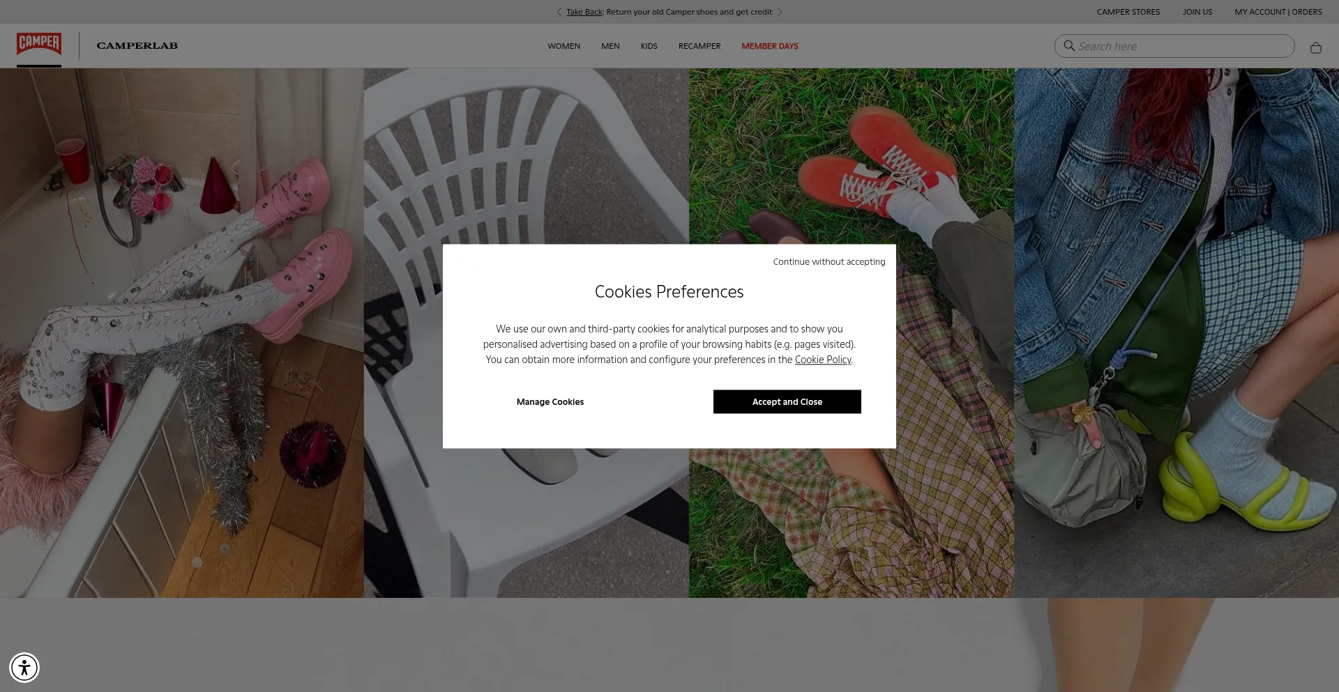 The website implements cookie consent mechanisms in compliance with privacy regulations such as GDPR or CCPA. This demonstrates that eu.campersneaker.com adheres to data protection standards and provides users with control over personal data collection practices.