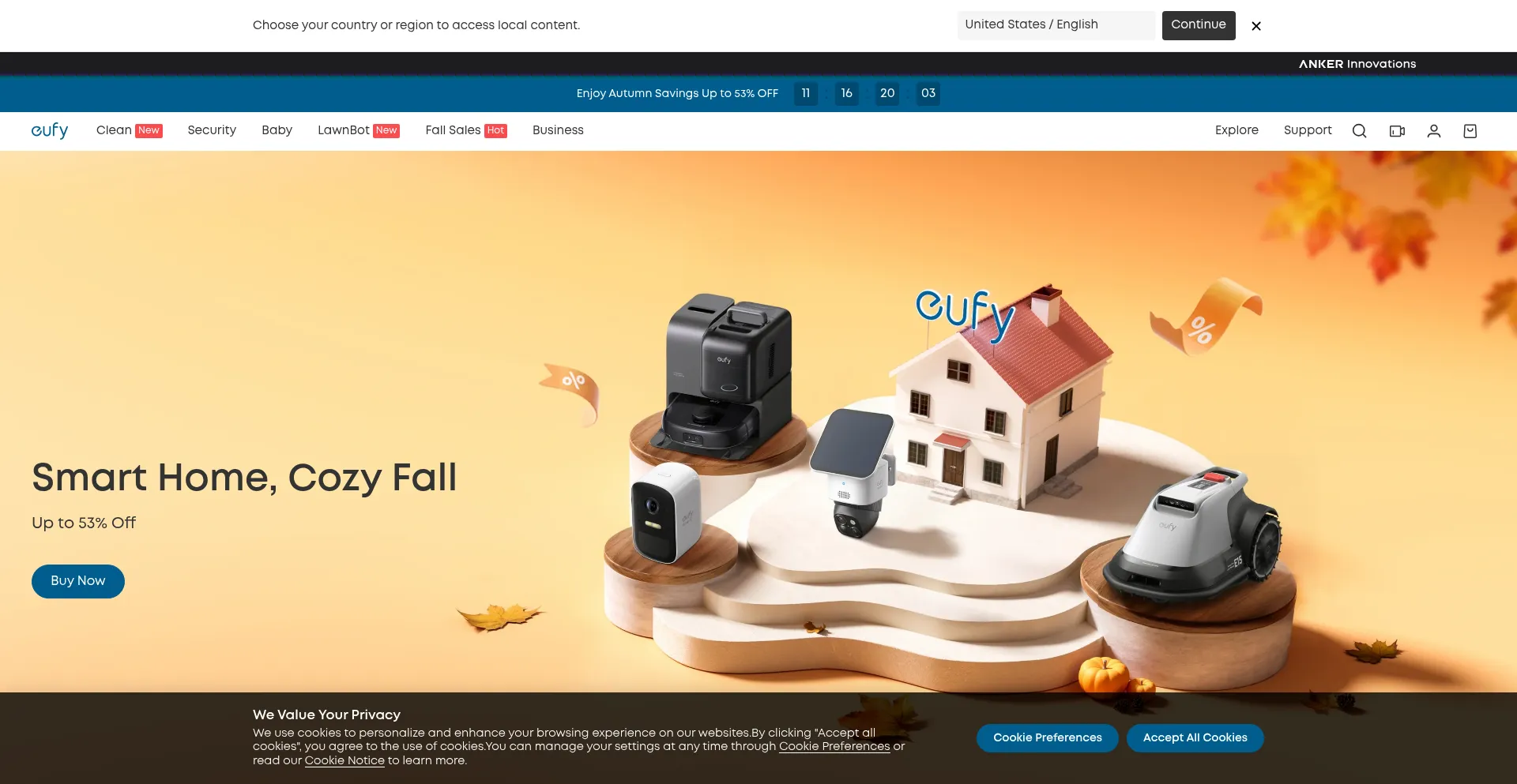 The website implements cookie consent mechanisms in compliance with privacy regulations such as GDPR or CCPA. This demonstrates that eu.eufy.com adheres to data protection standards and provides users with control over personal data collection practices.