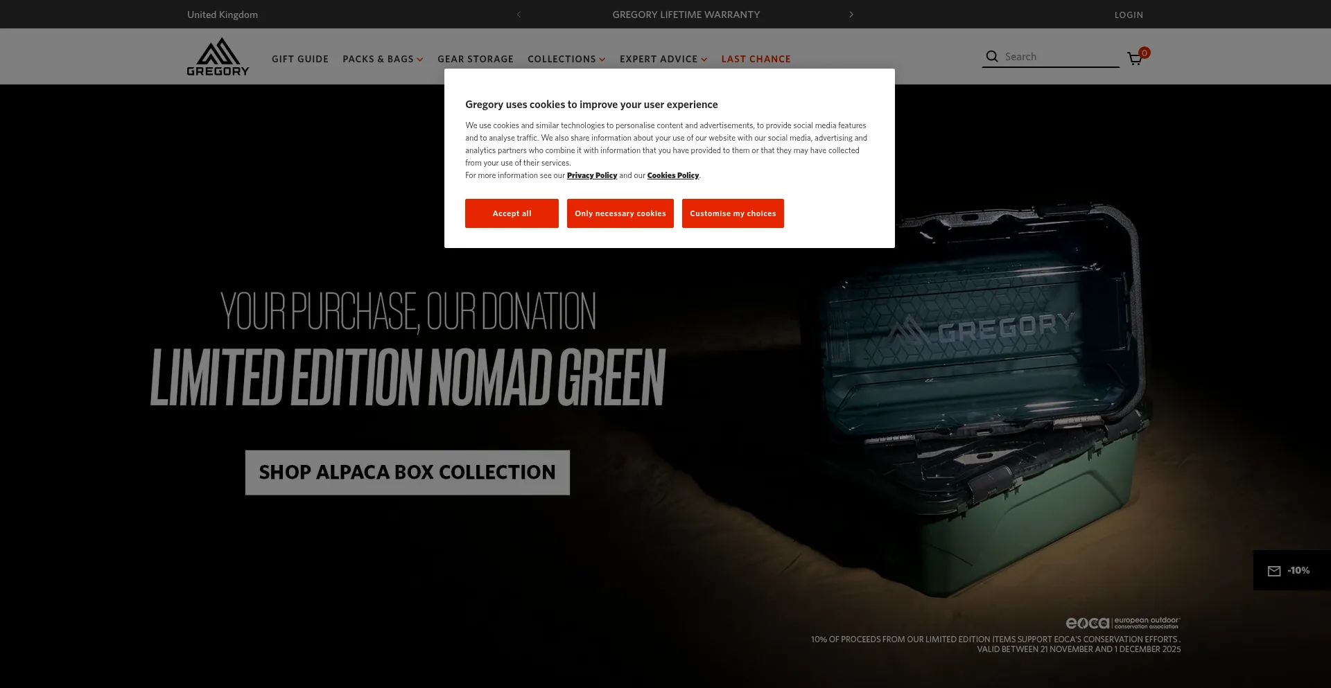 The website implements cookie consent mechanisms in compliance with privacy regulations such as GDPR or CCPA. This demonstrates that eu.gregorypacks.com adheres to data protection standards and provides users with control over personal data collection practices.