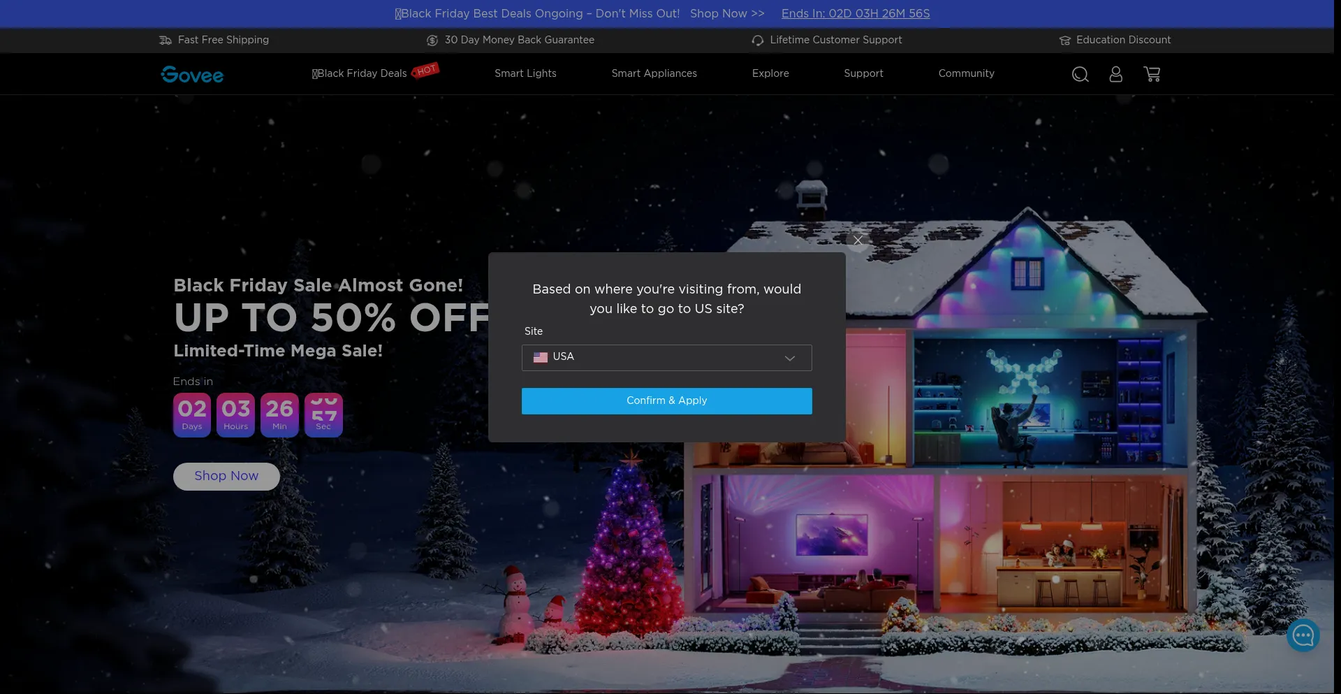 Analysis indicates that eu-store.govee.com operates as an e-commerce platform facilitating online transactions for goods or services. The website implements shopping cart functionality, payment processing systems, and product catalog features typical of commercial retail operations.