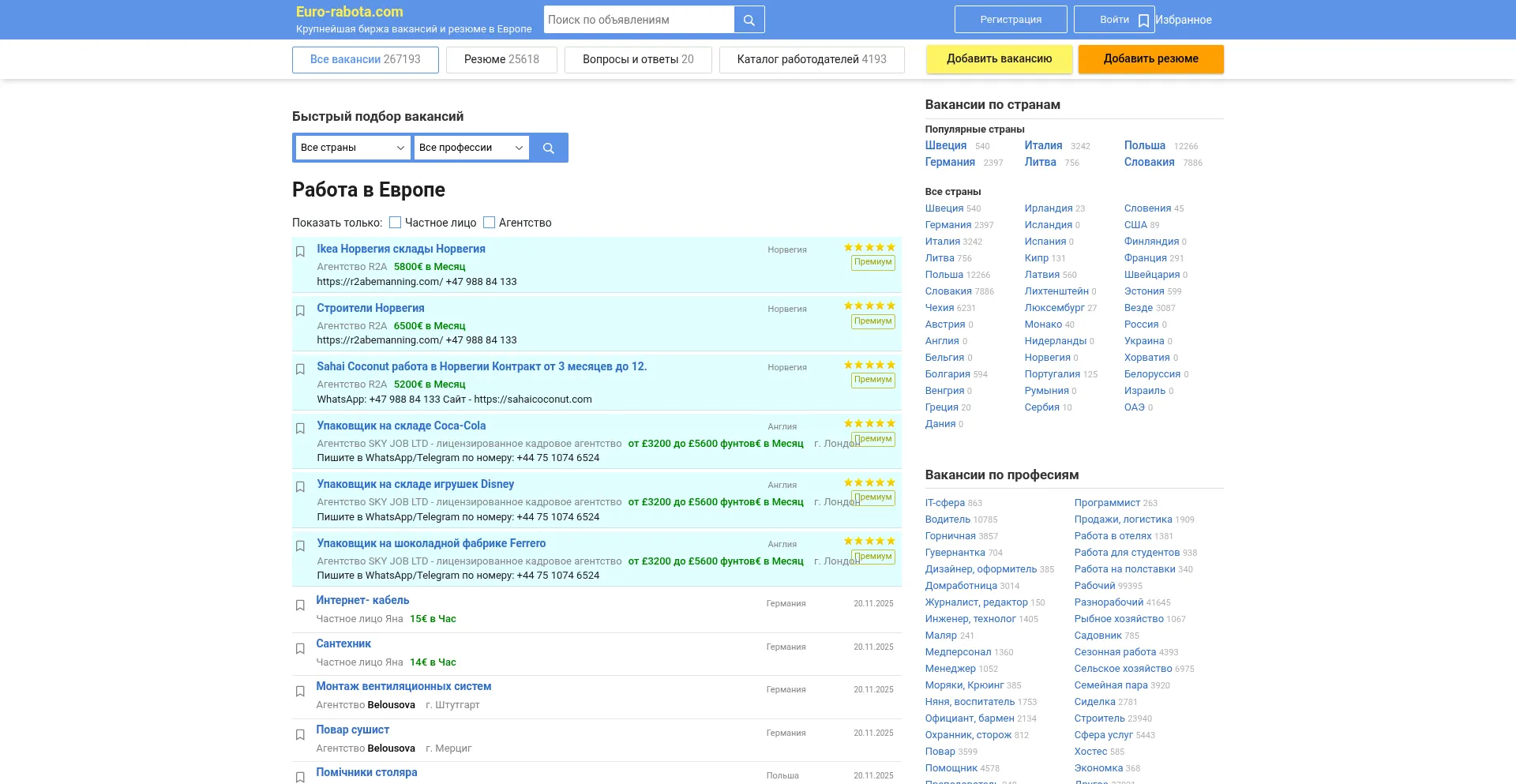 Работа в Европе - крупнейшая европейская биржа труда. Вакансии и поиск персонала в Европе.
