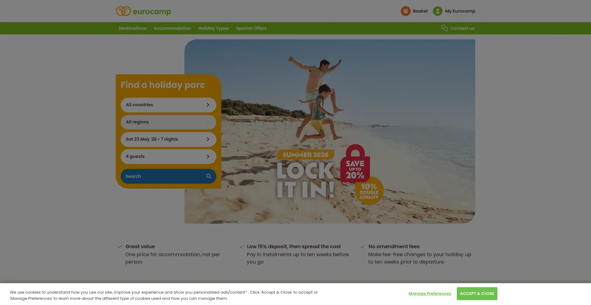 The website implements cookie consent mechanisms in compliance with privacy regulations such as GDPR or CCPA. This demonstrates that eurocamp.co.uk adheres to data protection standards and provides users with control over personal data collection practices.