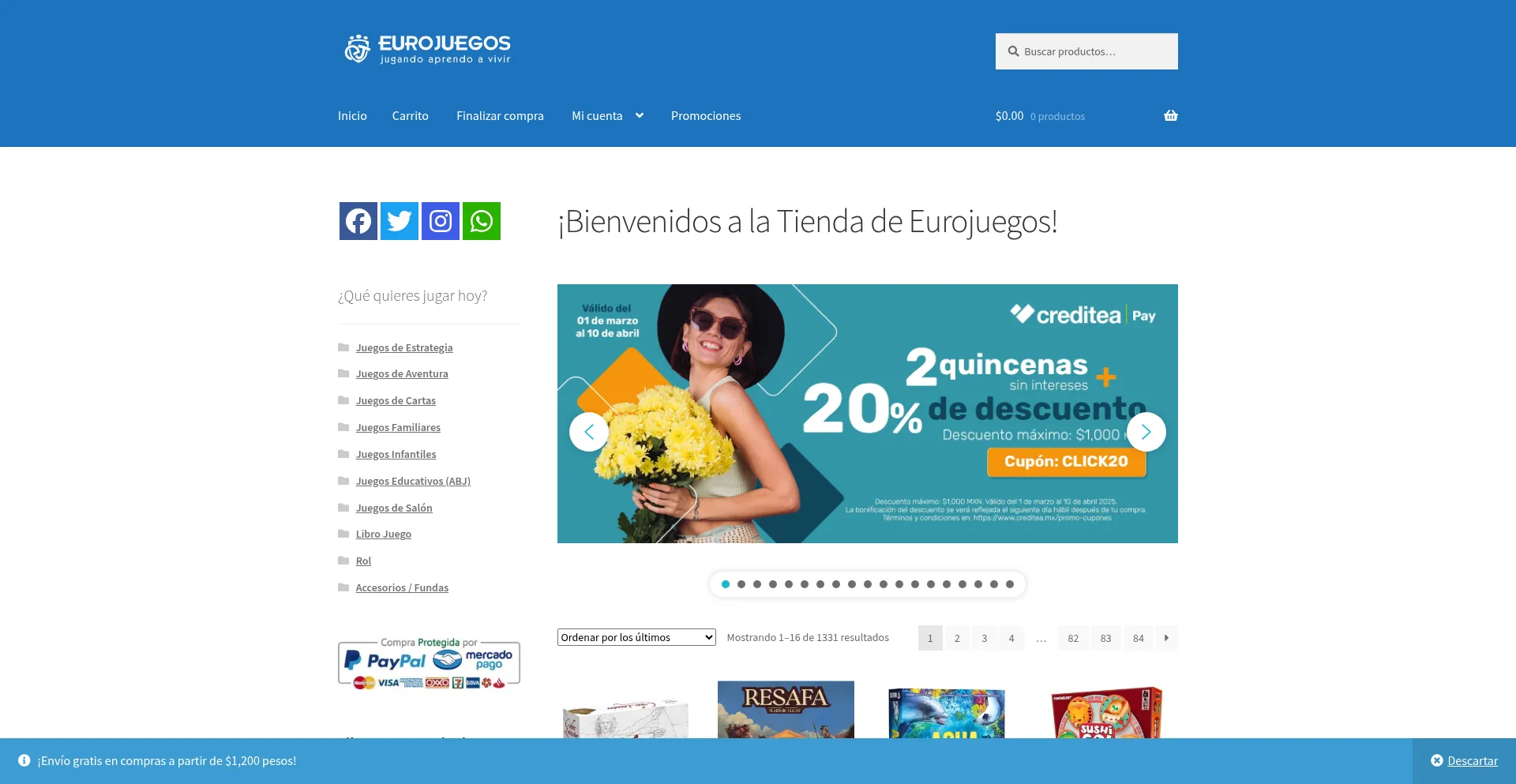 Tienda con gran variedad de juegos de mesa. Conoce y descubre los mejores juegos 100% en español. ¡ENVIO GRATIS! en compras >$999 pesos.