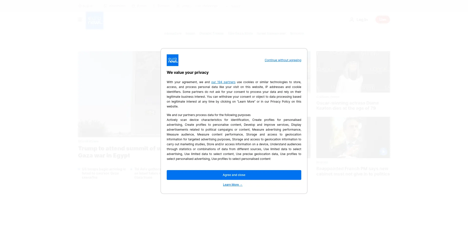 The website implements cookie consent mechanisms in compliance with privacy regulations such as GDPR or CCPA. This demonstrates that euronews.com adheres to data protection standards and provides users with control over personal data collection practices.