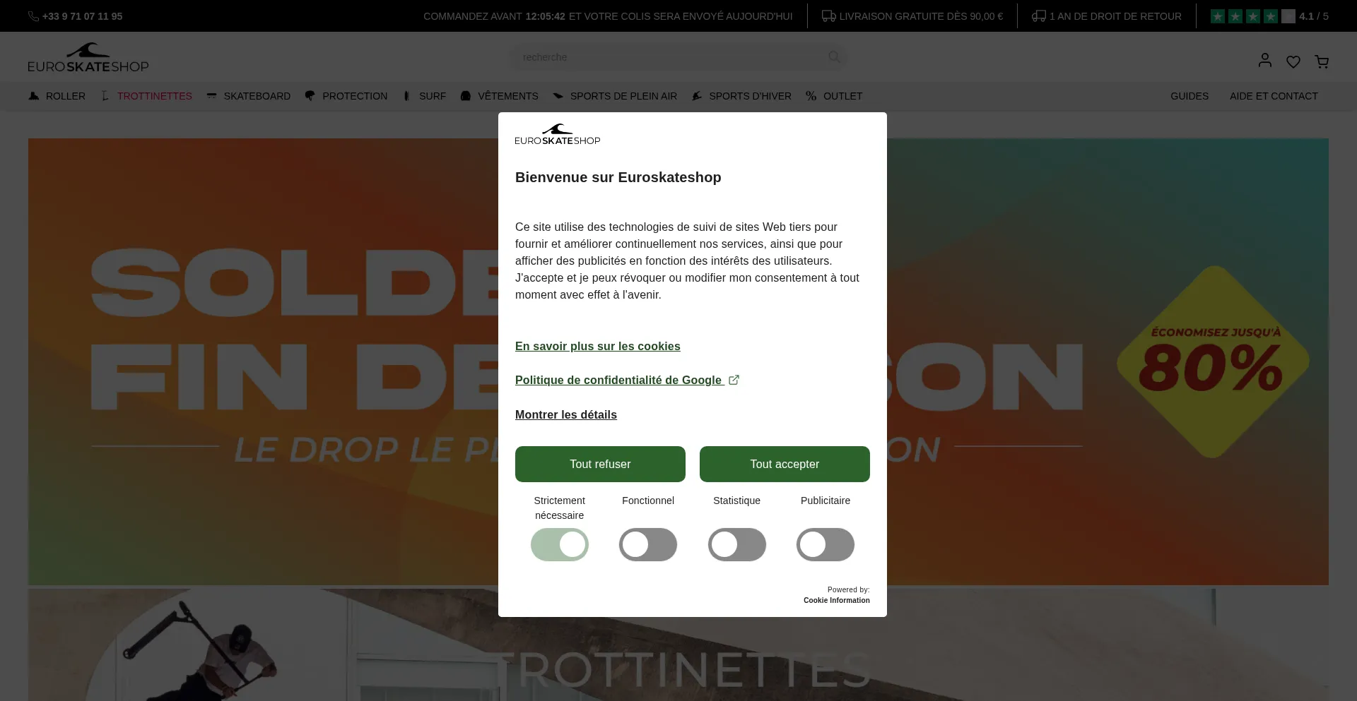 The euroskateshop.fr website uses Google Tag Manager to add and update tracking tags on its website.