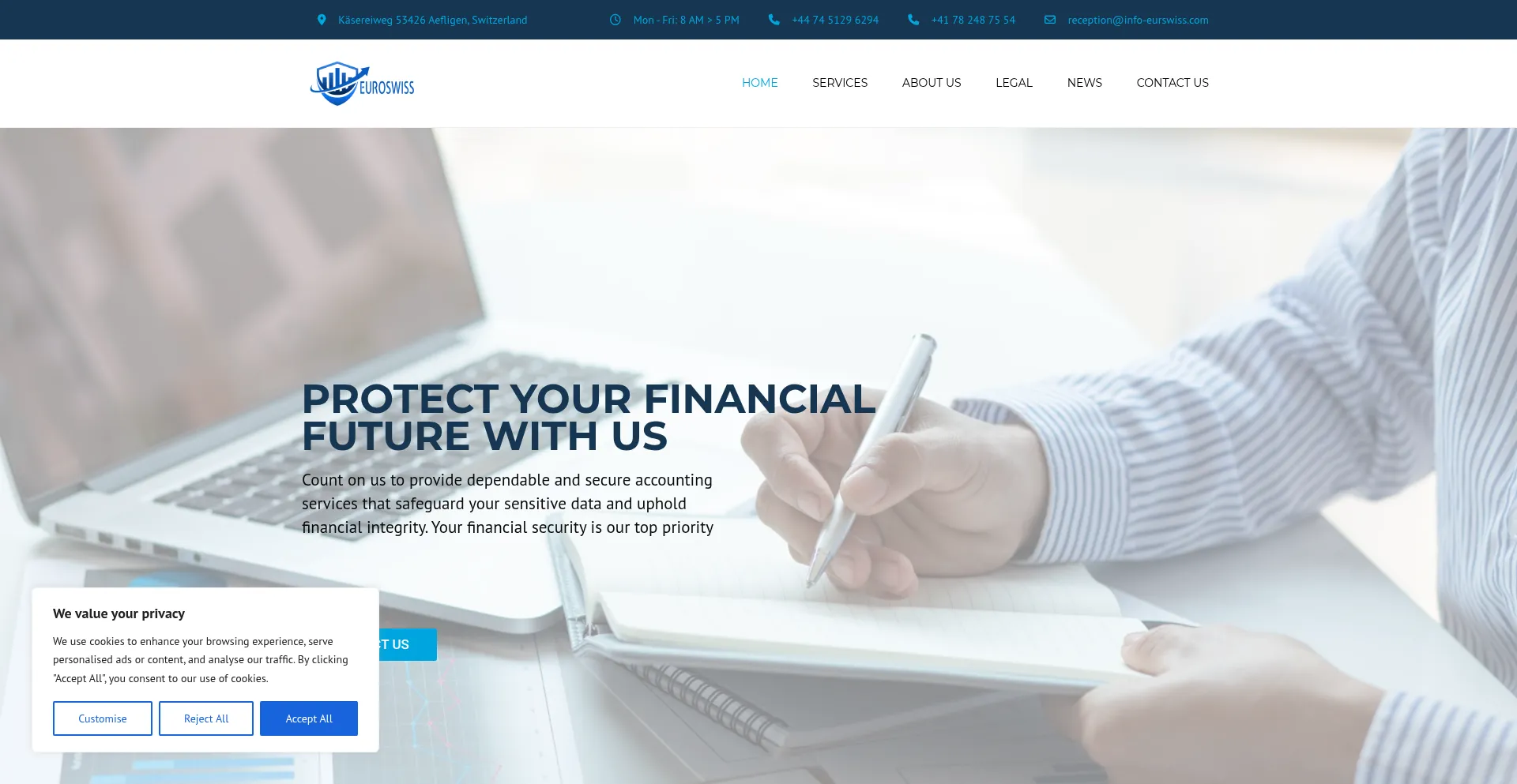 The website implements cookie consent mechanisms in compliance with privacy regulations such as GDPR or CCPA. This demonstrates that eurswiss.com adheres to data protection standards and provides users with control over personal data collection practices.