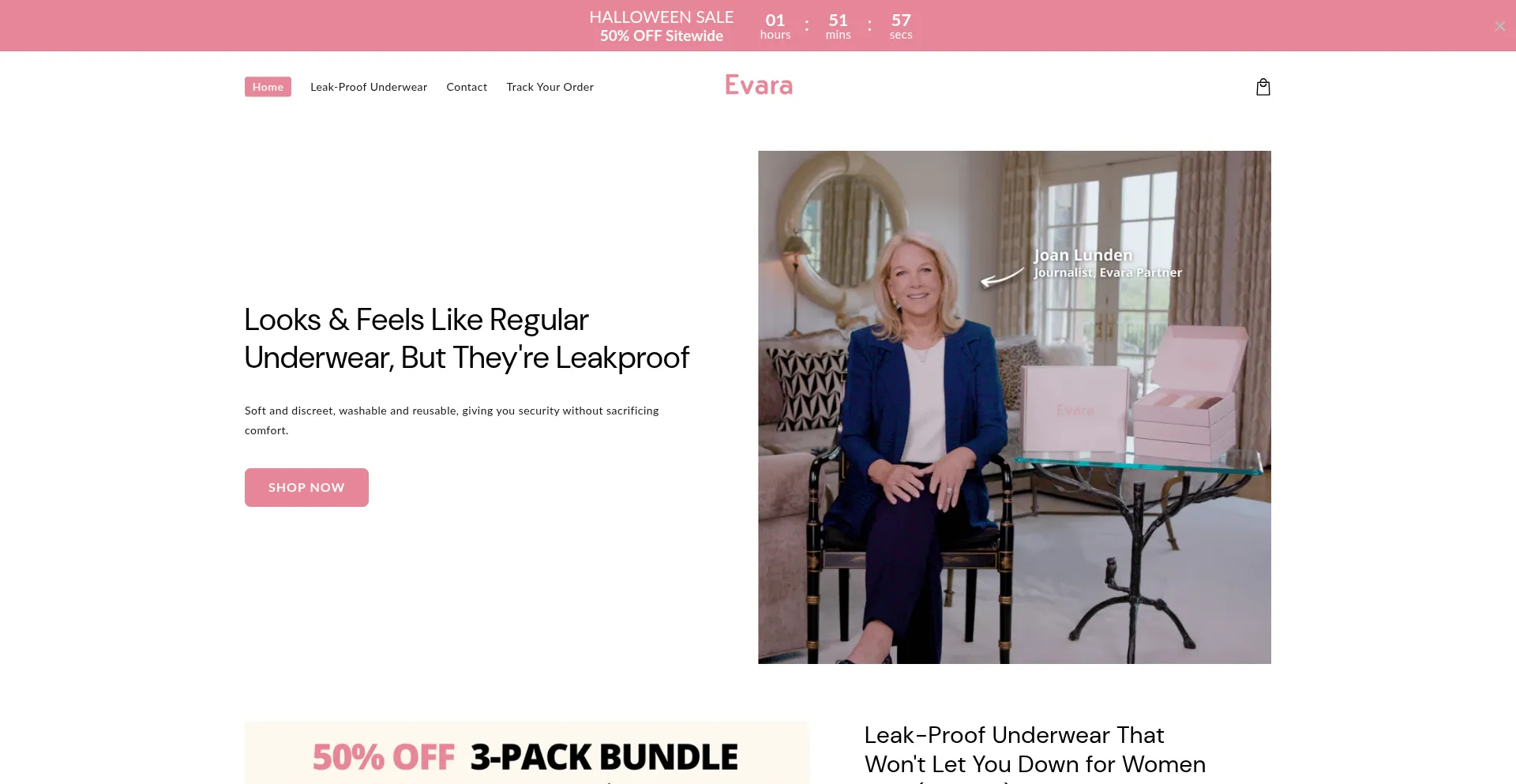 Evara™ leakproof underwear that looks like lingerie. Designed to keep women 55+ dry, confident, and comfortable with elegant, odor-free protection.