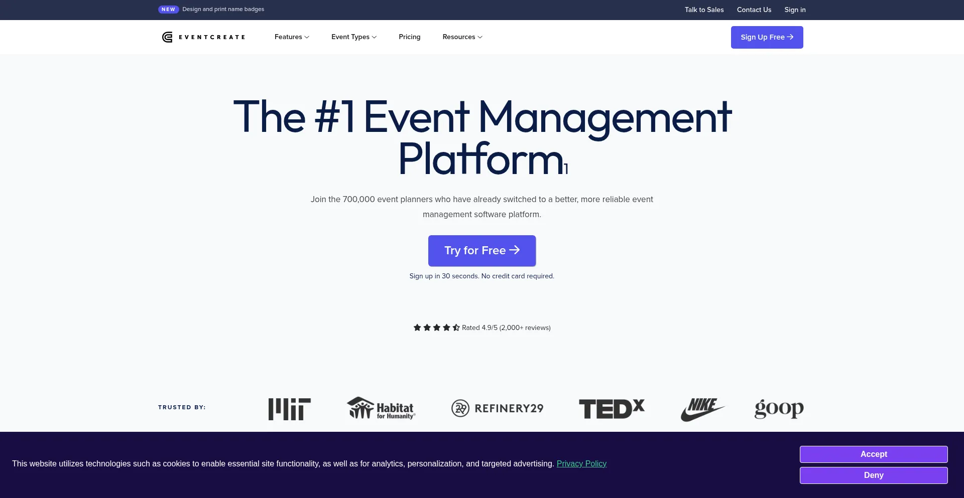 The eventcreate.com website uses Google Tag Manager to add and update tracking tags on its website.