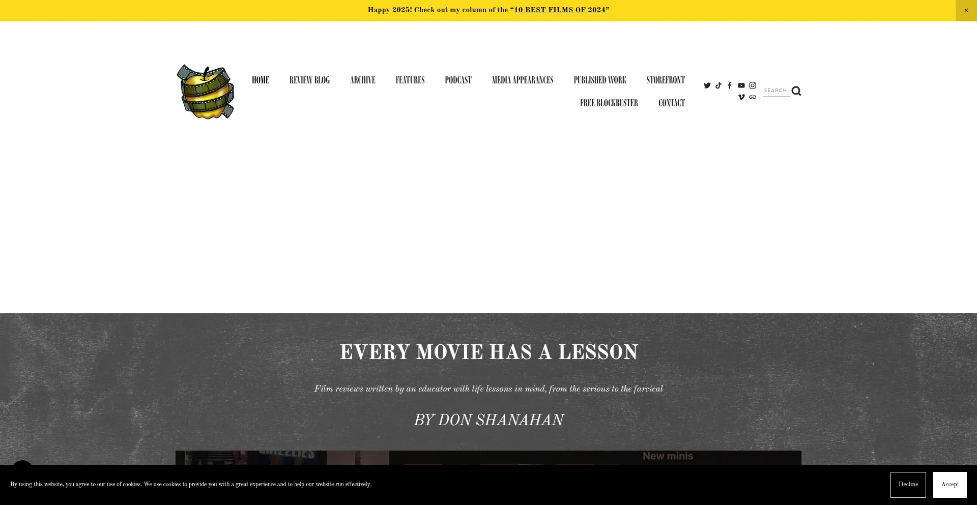 "Every Movie Has a Lesson" takes a look at film commentary and movie reviews from the point of view of an educator with life lesson in mind, from the serious to the farcical.