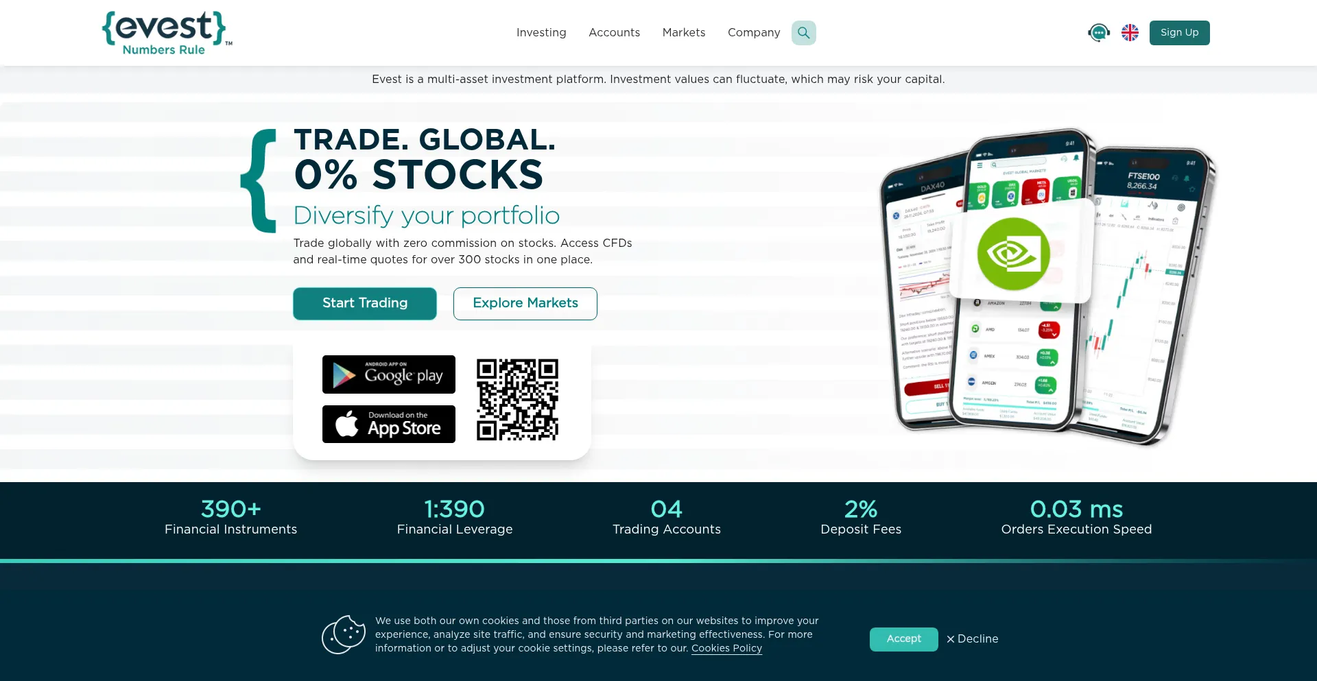 Evest Zero commission on stocks, a reliable multi-asset Trading platform. Test strategies on demo account, replicate successful traders with Copy Trade