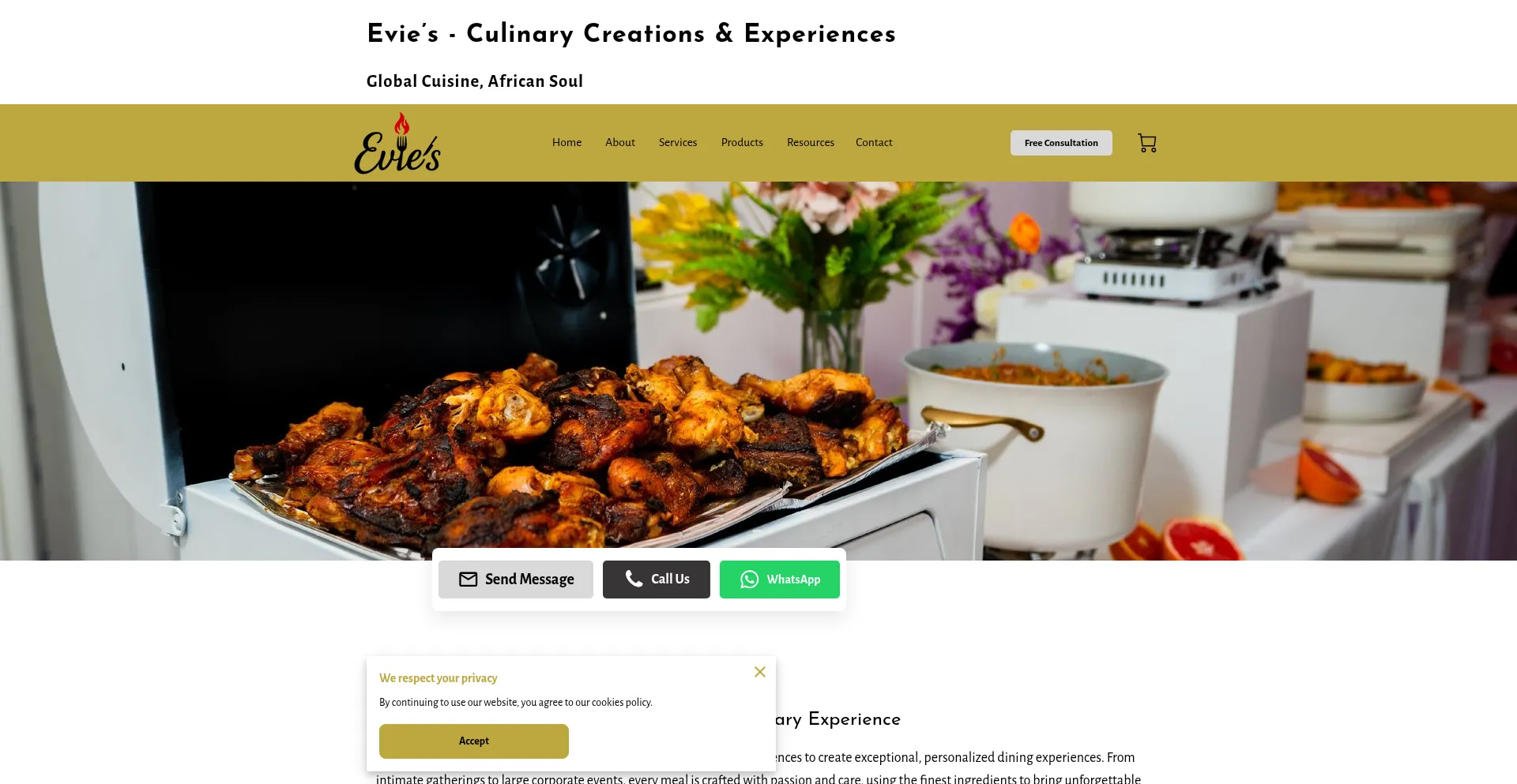 Analysis indicates that eviesculinary.com operates as an e-commerce platform facilitating online transactions for goods or services. The website implements shopping cart functionality, payment processing systems, and product catalog features typical of commercial retail operations.