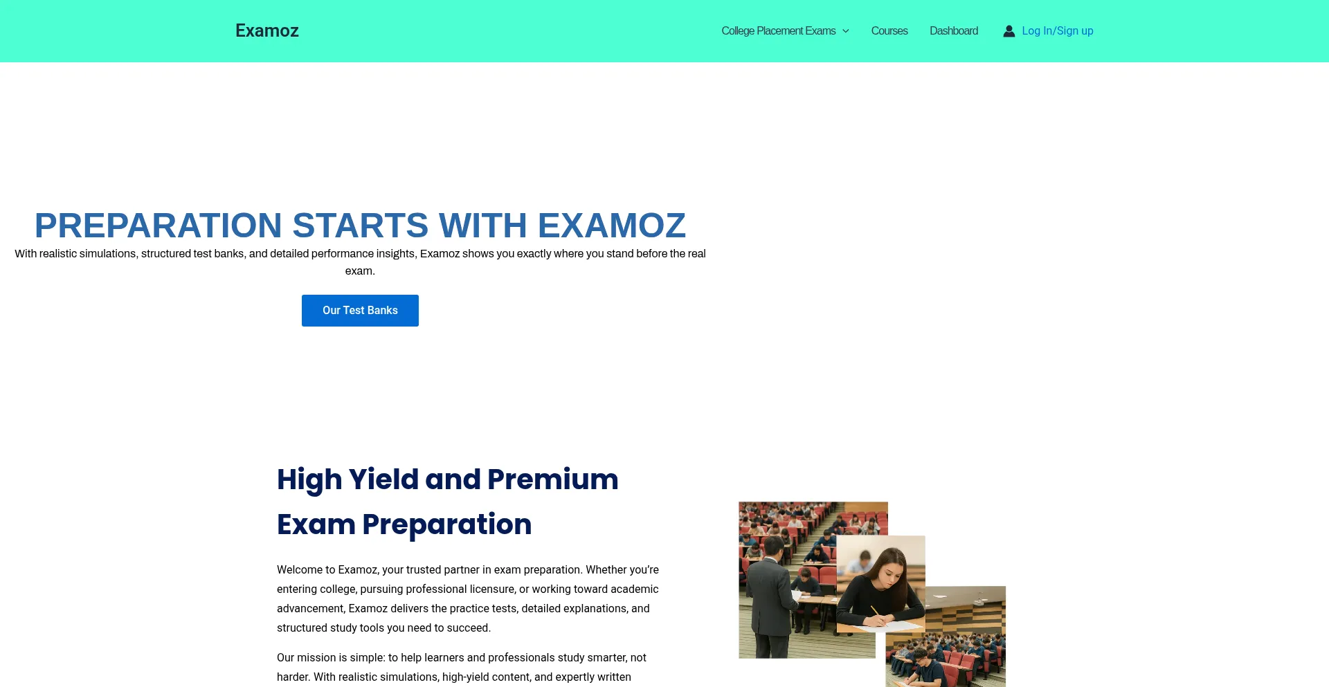 With realistic simulations, structured test banks, and detailed performance insights, Examoz shows you exactly where you stand before the real exam.
