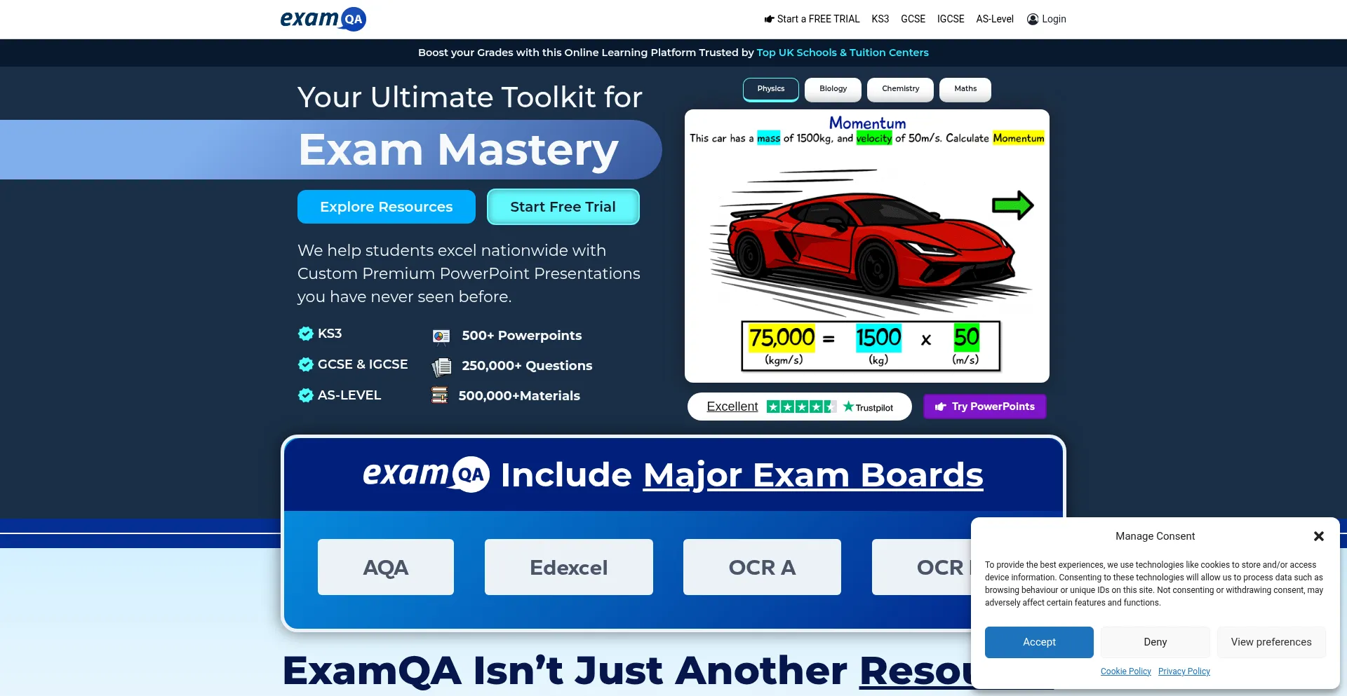 The website implements cookie consent mechanisms in compliance with privacy regulations such as GDPR or CCPA. This demonstrates that examqa.com adheres to data protection standards and provides users with control over personal data collection practices.