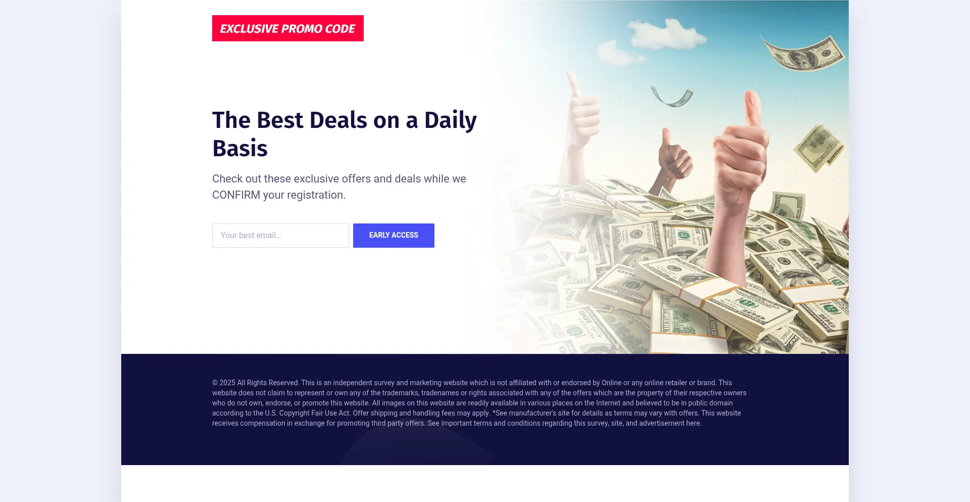 Exclusive-promocode.com operates a phishing platform designed to steal sensitive personal information, such as login credentials and financial data, through social engineering tactics.