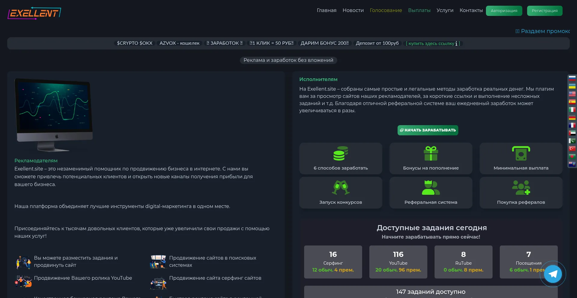 Реклама и заработок без вложений | Exellent.site