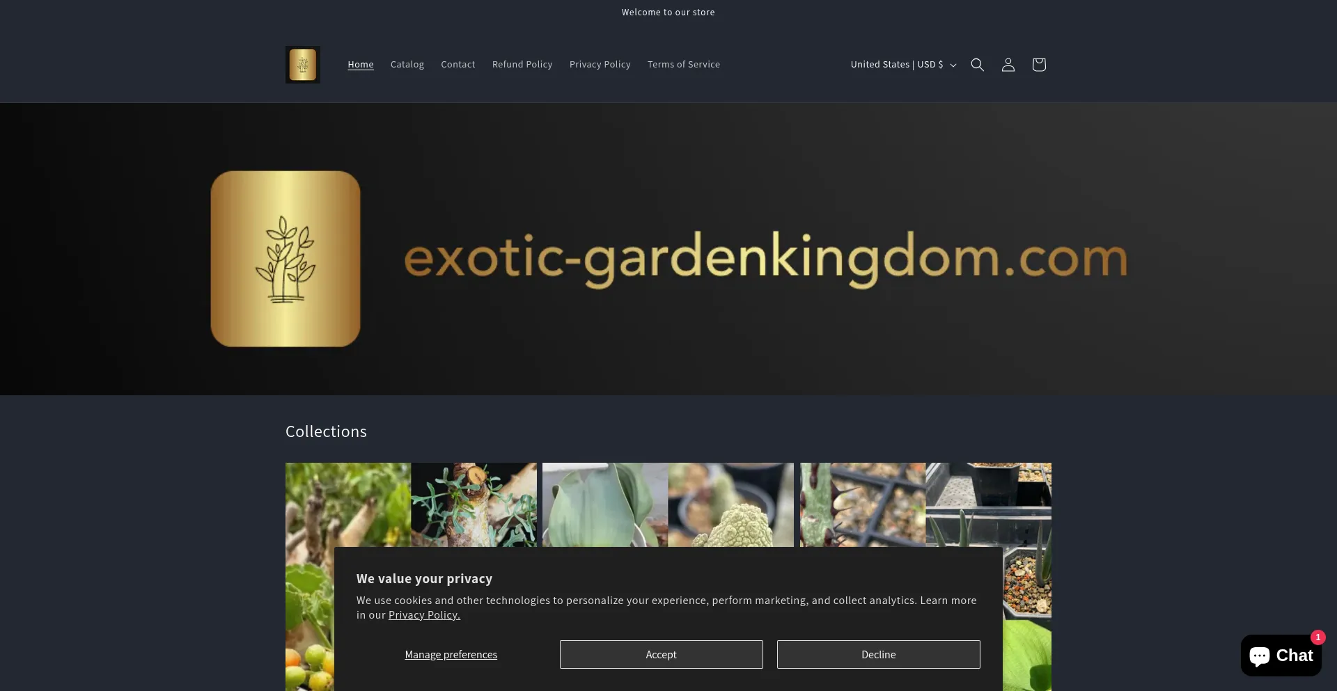The website implements cookie consent mechanisms in compliance with privacy regulations such as GDPR or CCPA. This demonstrates that exotic-gardenkingdom.com adheres to data protection standards and provides users with control over personal data collection practices.