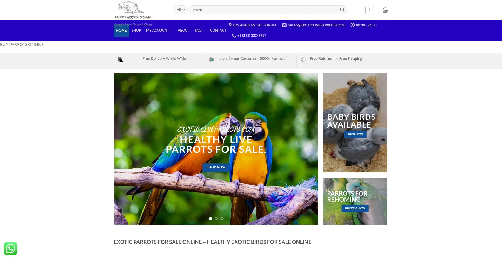 Exotic Live Parrot is one of the largest Parrot Shop & seller in the USA.We sell Parrots such as African Greys,Amazon Parrots,Macaw,Conues. Shop Now!!
