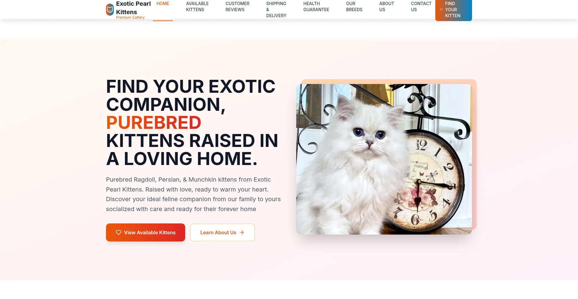Professional cattery management system for Exotic Pearl Kittens. Manage kittens, breeds, and inquiries with ease.