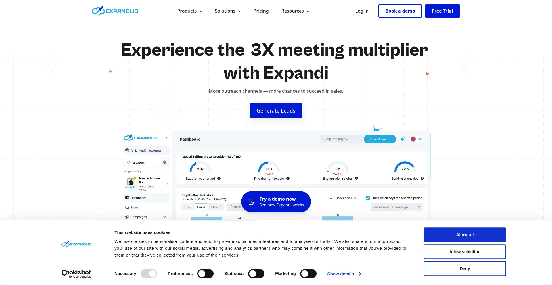 The website implements cookie consent mechanisms in compliance with privacy regulations such as GDPR or CCPA. This demonstrates that expandi.io adheres to data protection standards and provides users with control over personal data collection practices.