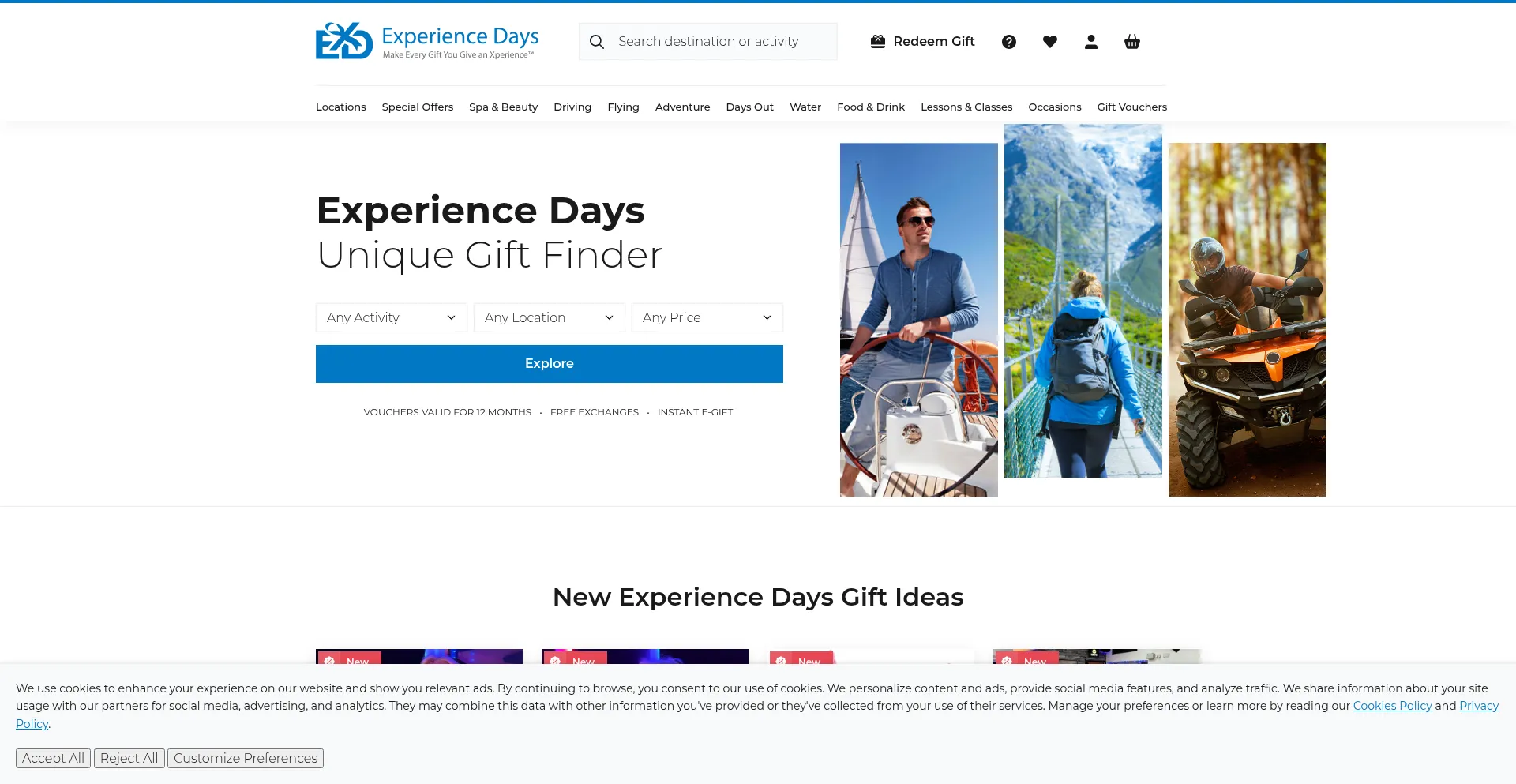 The website implements cookie consent mechanisms in compliance with privacy regulations such as GDPR or CCPA. This demonstrates that experiencedays.co.uk adheres to data protection standards and provides users with control over personal data collection practices.