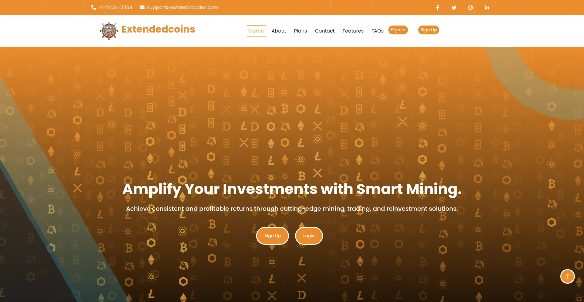 Analysis reveals that extendedcoins.com displays social media icons or links that do not connect to legitimate social media profiles. This deceptive practice is commonly employed to create false legitimacy and represents a significant indicator of fraudulent intent requiring immediate caution.