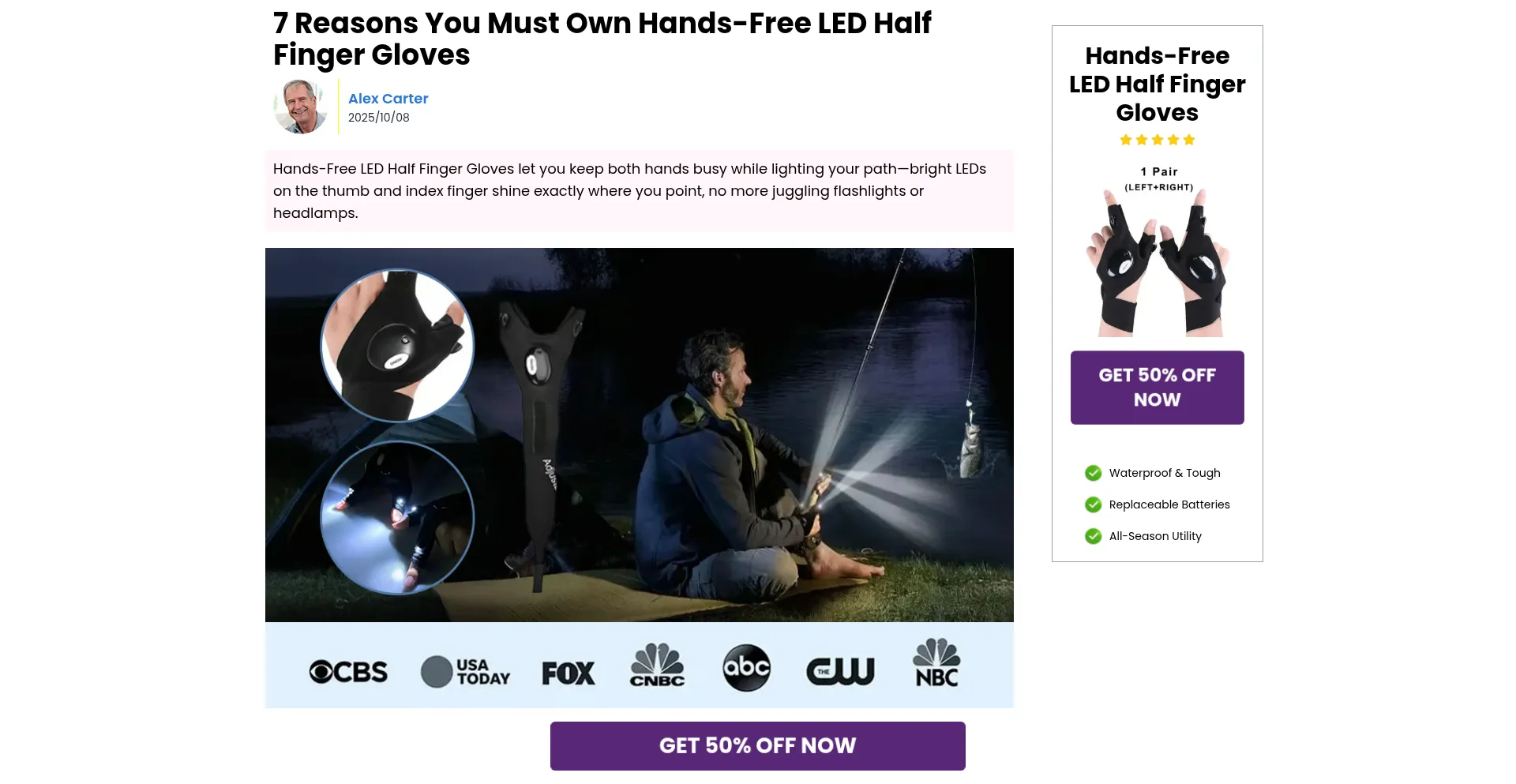 Hands-Free LED Half Finger Gloves