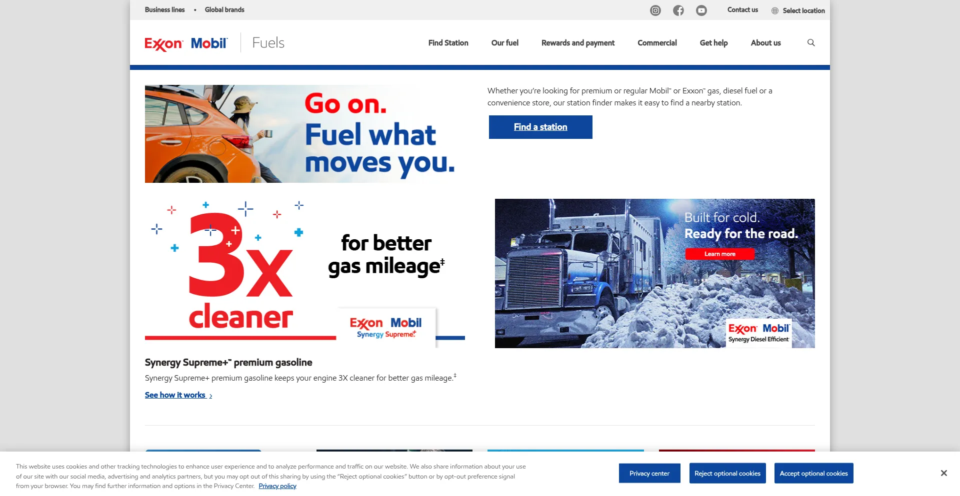 The website implements cookie consent mechanisms in compliance with privacy regulations such as GDPR or CCPA. This demonstrates that exxon.com adheres to data protection standards and provides users with control over personal data collection practices.