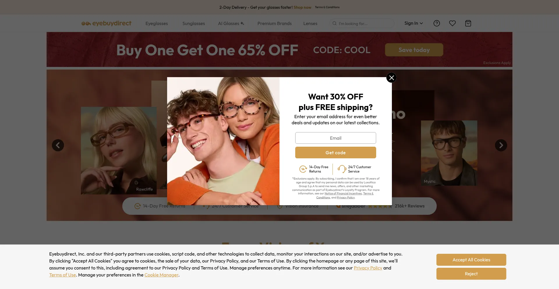The website implements cookie consent mechanisms in compliance with privacy regulations such as GDPR or CCPA. This demonstrates that eyebuydirect.com adheres to data protection standards and provides users with control over personal data collection practices.