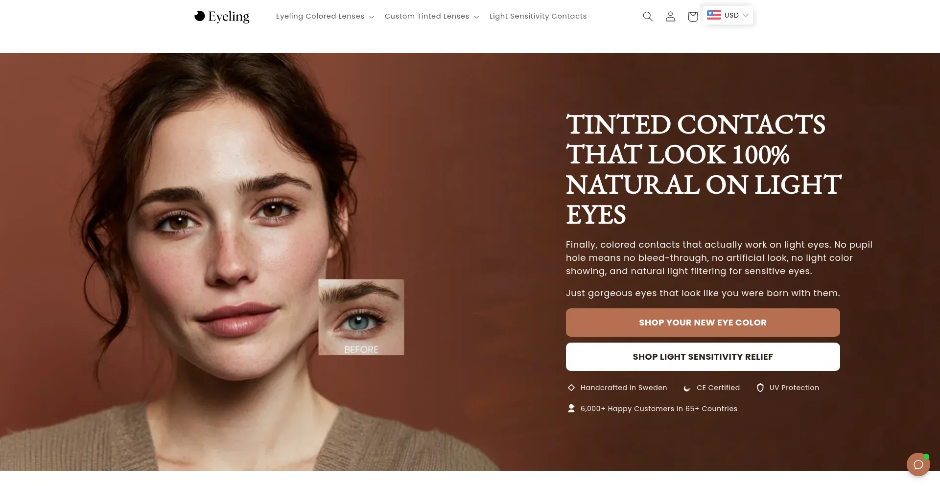 Experience unparalleled natural beauty with Eyeling's tinted contact lenses, designed with a unique no-pupil opening for light eyes. Our meticulously handcrafted lenses offer a ...