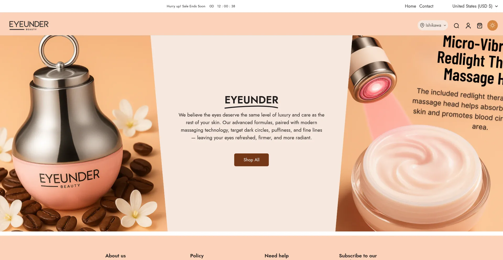 Our analyzer determines that website eyeunder.com is using Shopify CMS. Shopify is a popular e-commerce platform, powering around 4.4% of websites globally.