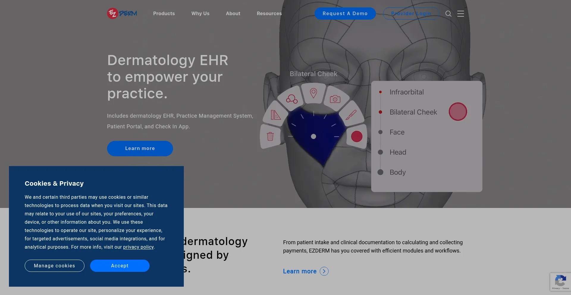 The website implements cookie consent mechanisms in compliance with privacy regulations such as GDPR or CCPA. This demonstrates that ezderm.com adheres to data protection standards and provides users with control over personal data collection practices.