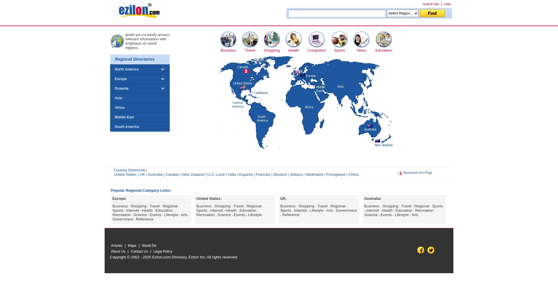 Ezilon.com - Regional Web Directory