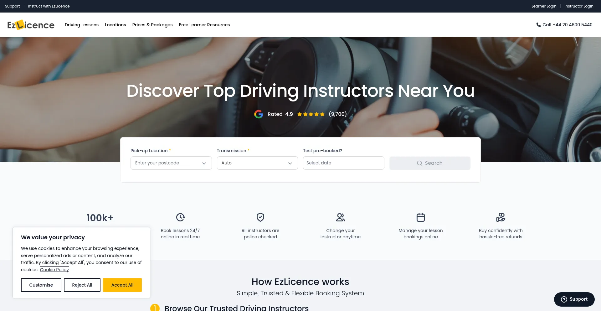 Discover the best driving schools in the UK with EzLicence. Compare driving instructors and book your driving lessons online with ease. Get a licence and hit the road with confi...