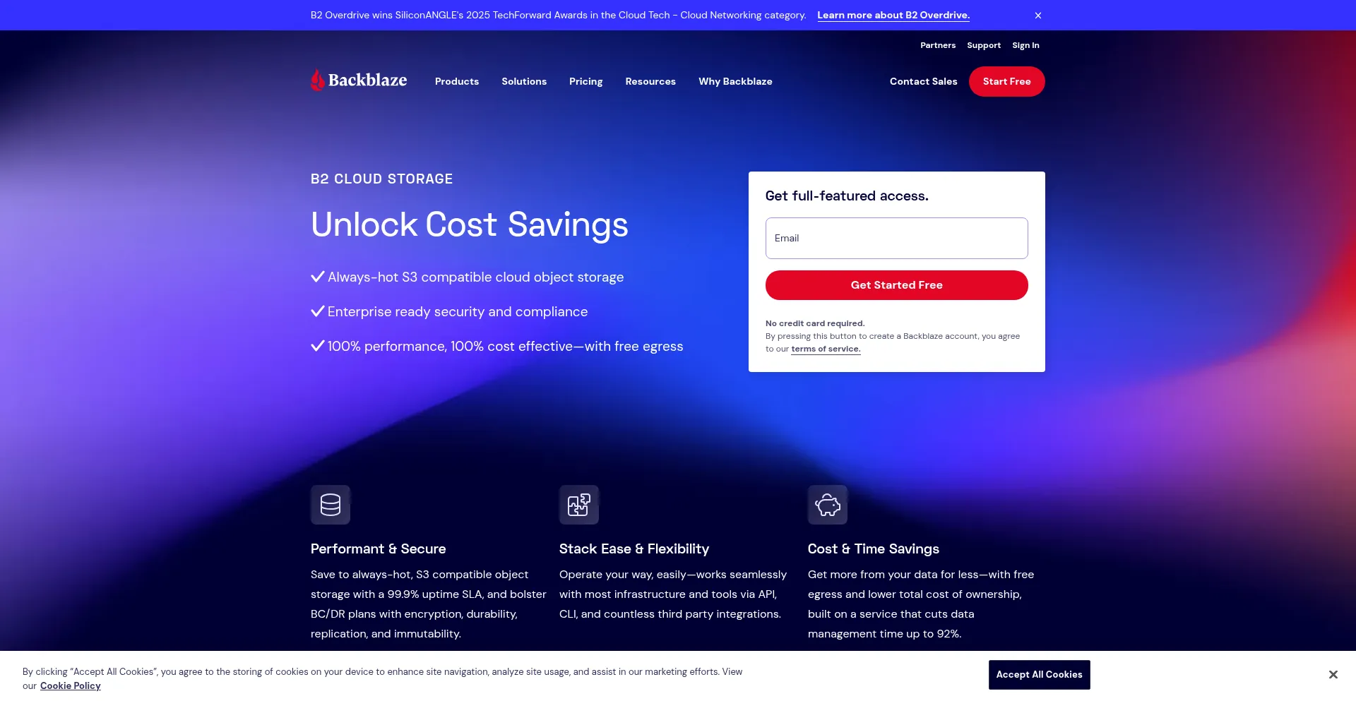 Backblaze B2 provides unlimited data storage in the cloud at 1/5th the cost of Amazon S3, Microsoft Azure, and Google Cloud.