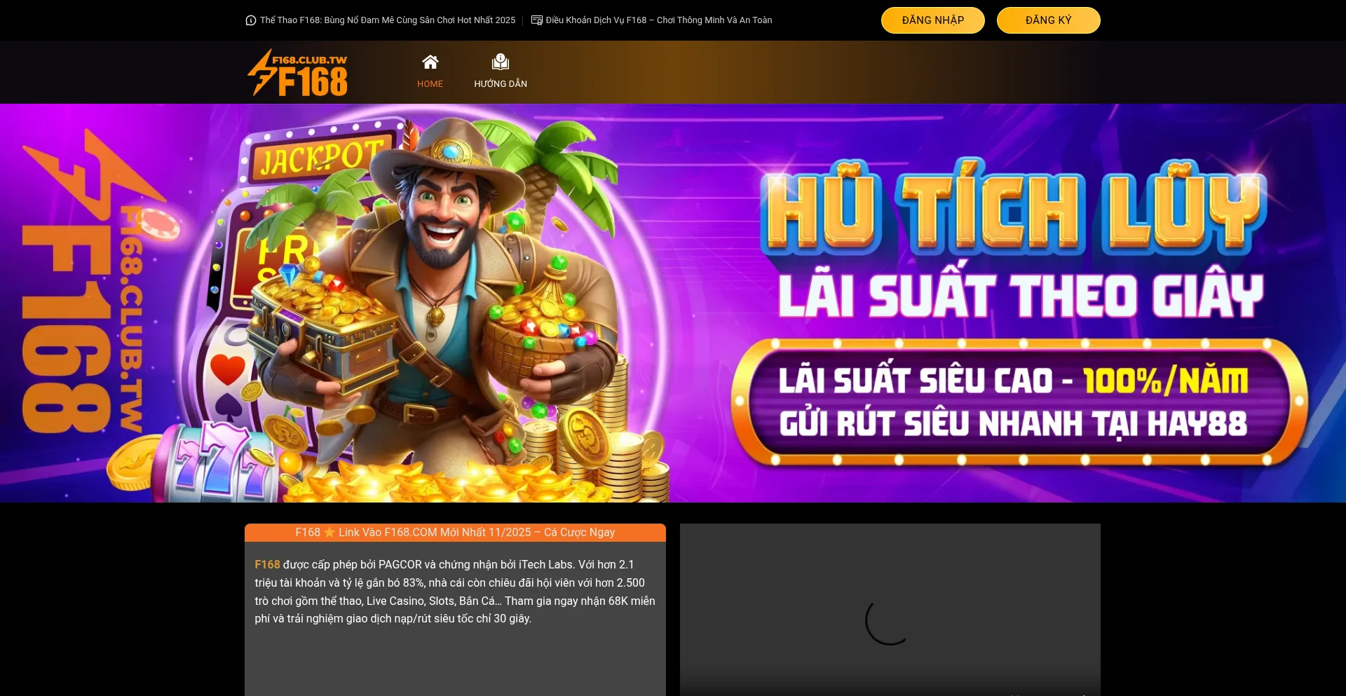 F168 là sân chơi giải trí số với 83% tỷ lệ giữ chân và >2000 hội viên mới/ngày. Sở hữu hệ thống thanh toán 100+ ngân hàng, đảm bảo tỷ l...