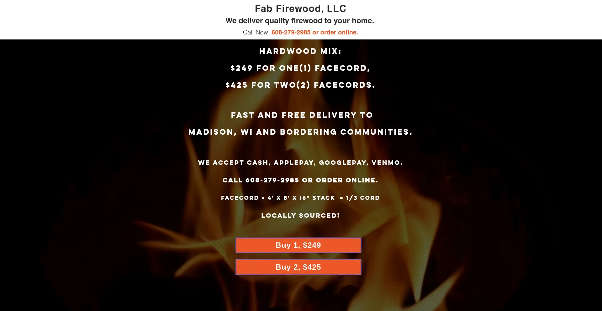 Fab Firewood, LLC delivers locally sourced firewood to driveways in Madison, WI and the surrounding community. Online or direct payment. We strive to deliver ASAP.