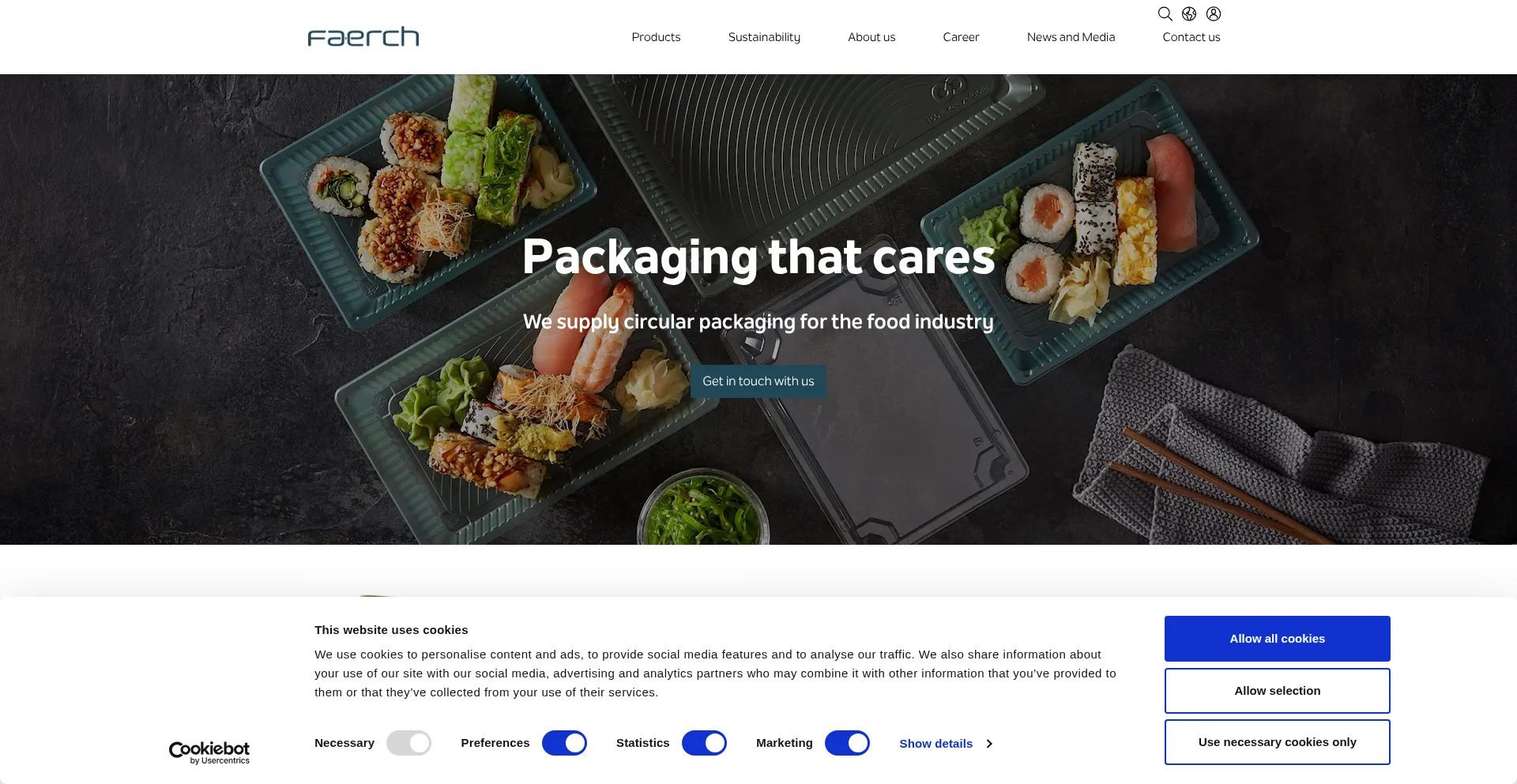 The website implements cookie consent mechanisms in compliance with privacy regulations such as GDPR or CCPA. This demonstrates that faerch.com adheres to data protection standards and provides users with control over personal data collection practices.