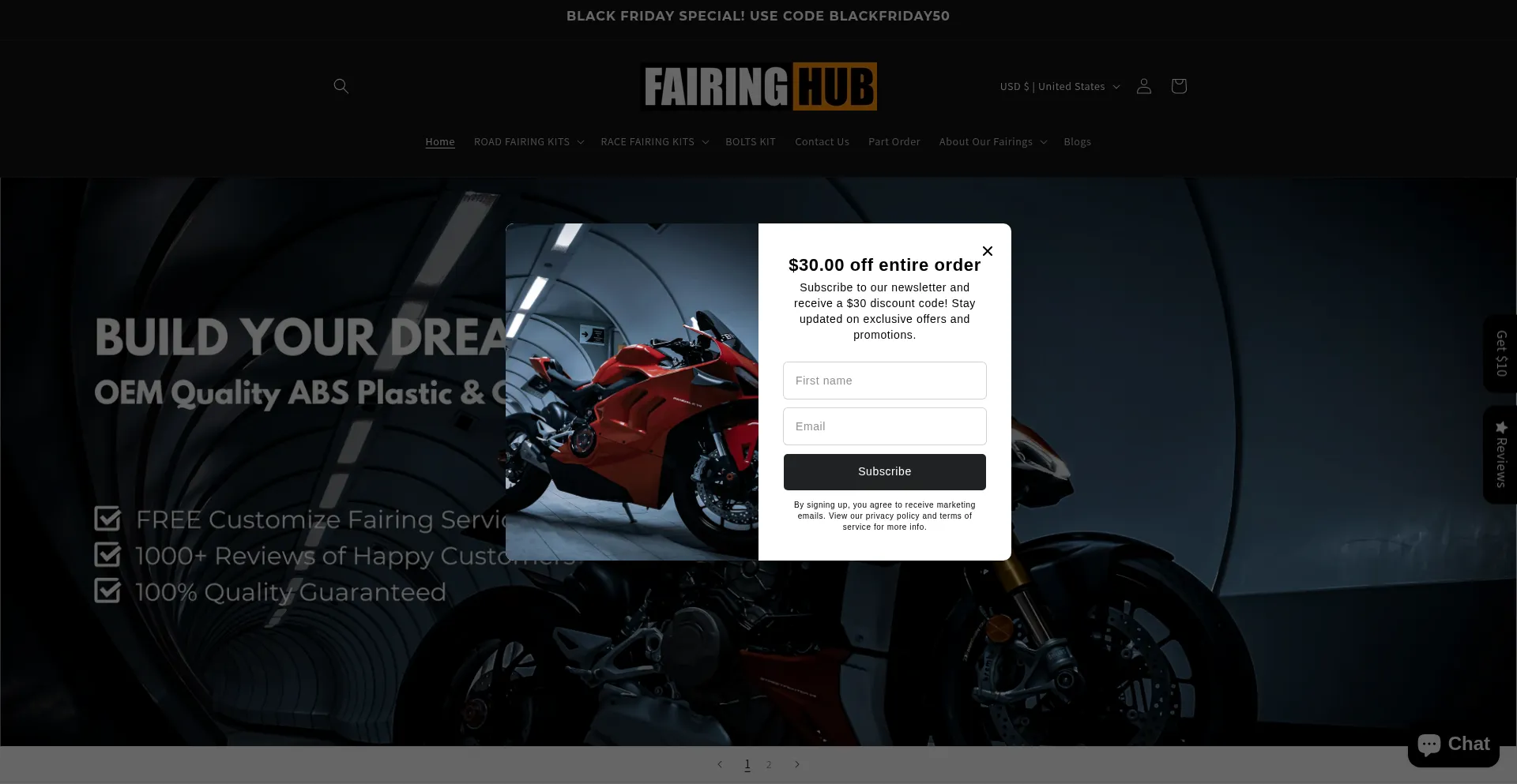 Our analyzer determines that website fairinghub.com is using Shopify CMS. Shopify is a popular e-commerce platform, powering around 4.4% of websites globally.