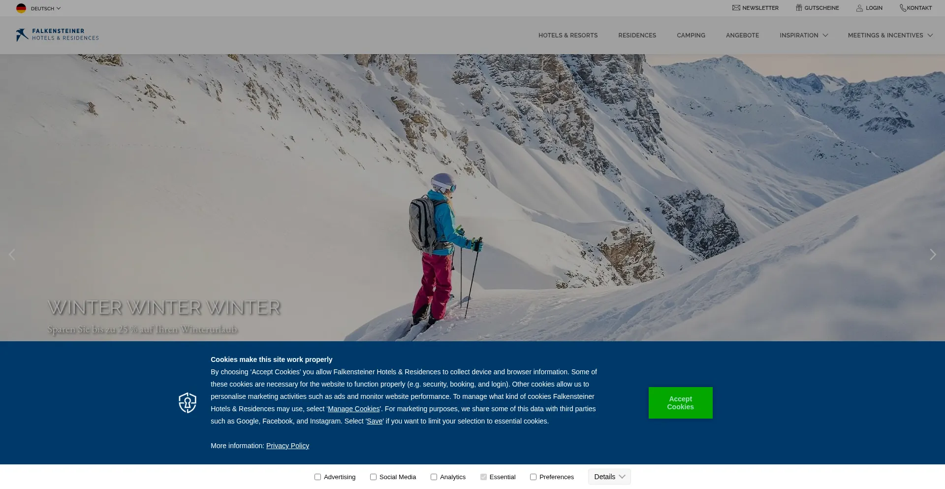 The falkensteiner.com website uses Google Tag Manager to add and update tracking tags on its website.