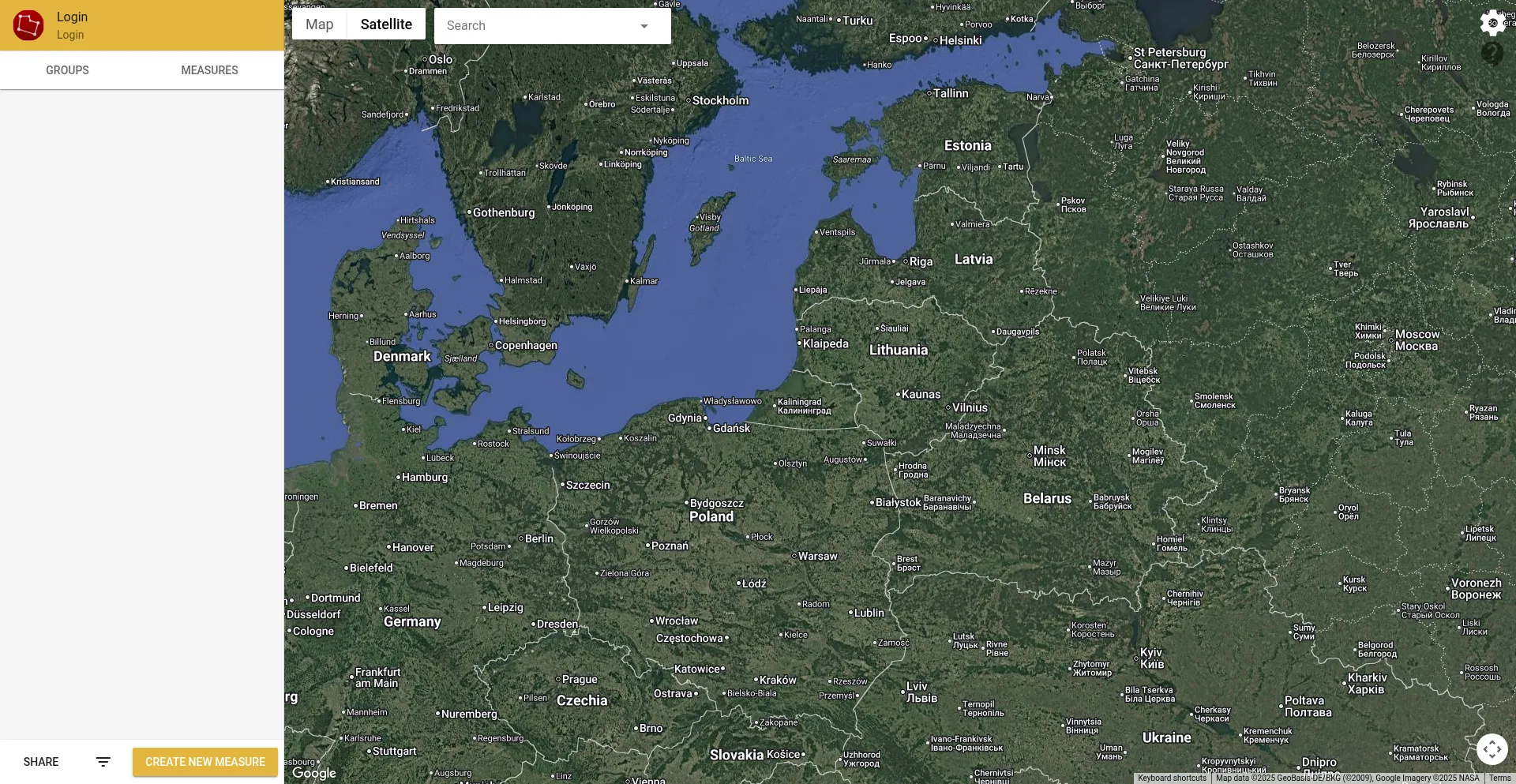 Measure fields and draw lines. Create markers and groups. Share or export as KML.