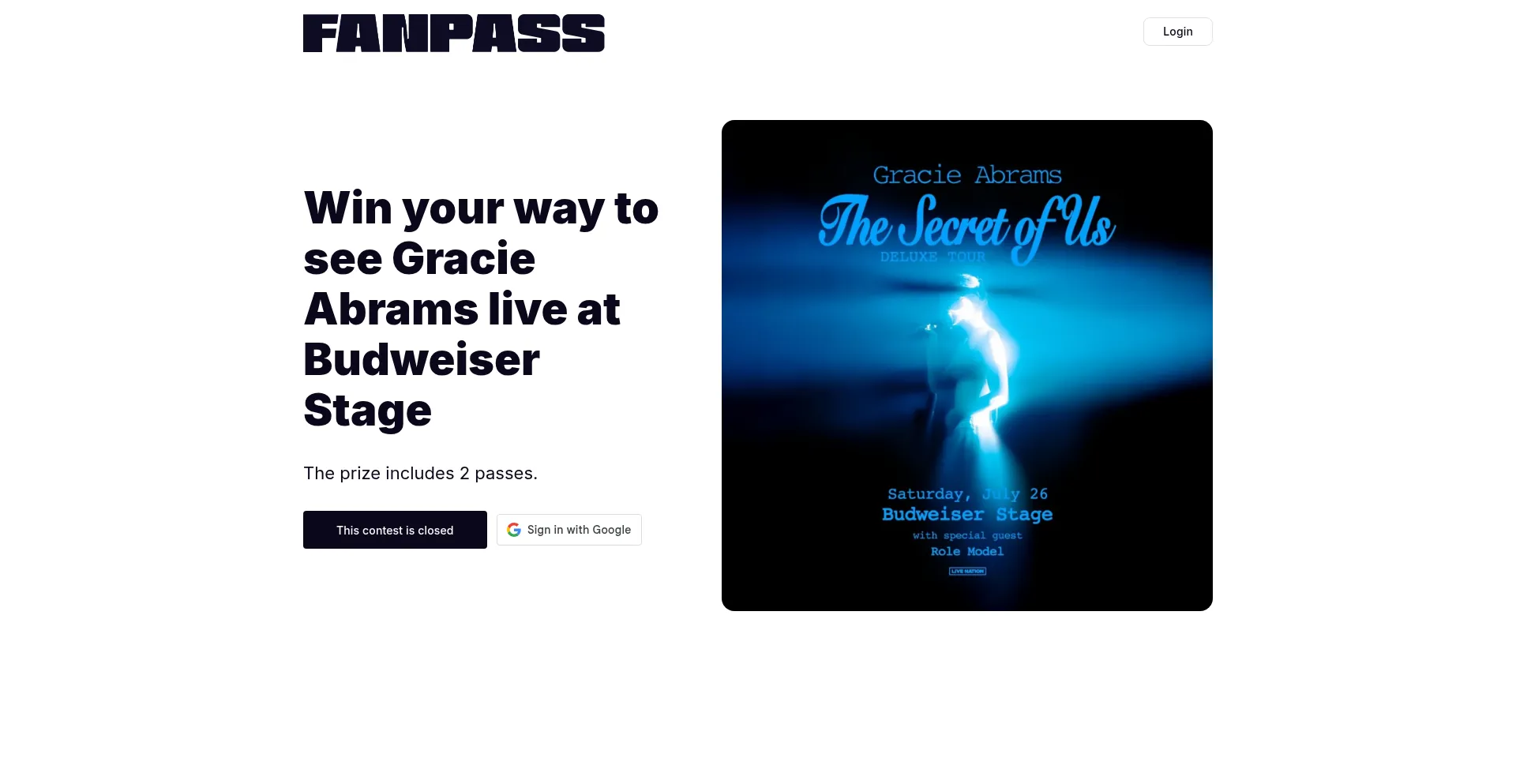 Fanpass members get a chance at 2 passes to see Gracie Abrams at Budweiser Stage
