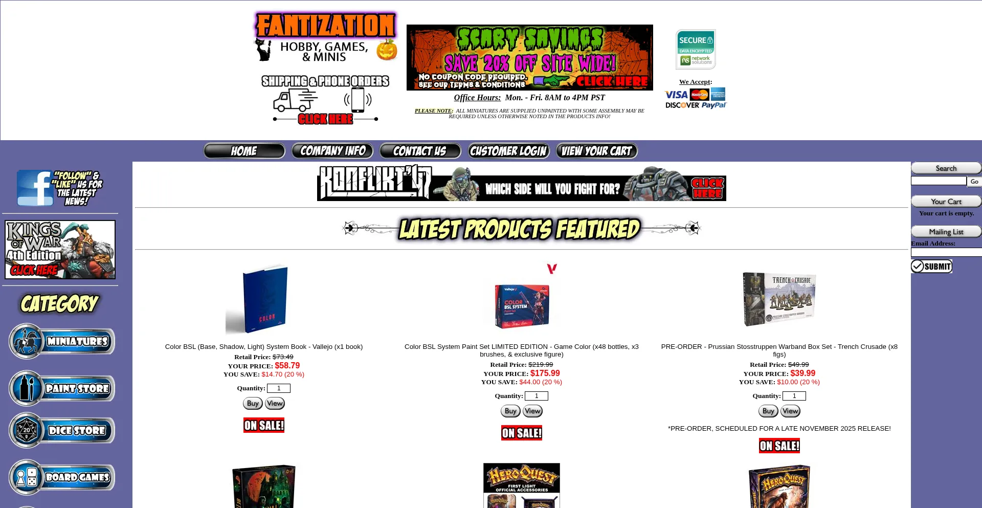 Fantization Miniatures is where you'll always find the latest and greatest gaming miniatures, paints, and hobby supplies imported from all around the world in one convenient sec...