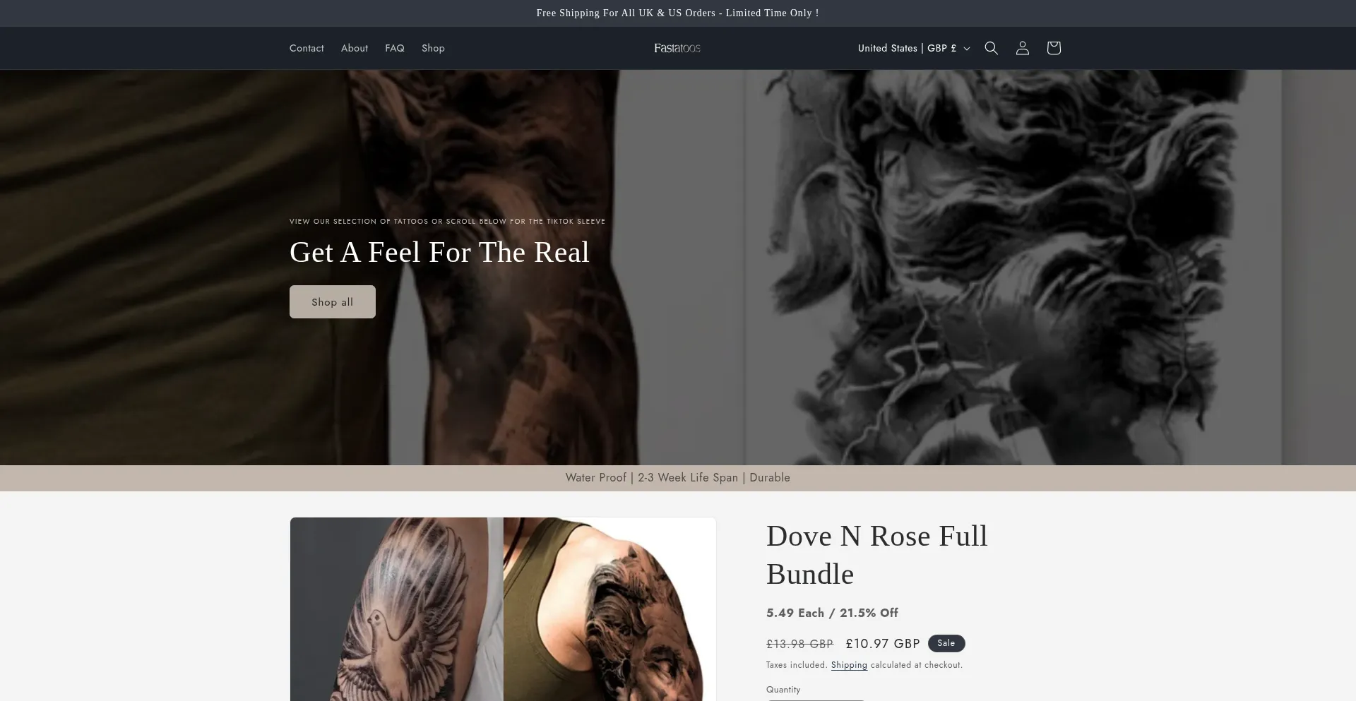 Analysis indicates that fastatoos.com operates as an e-commerce platform facilitating online transactions for goods or services. The website implements shopping cart functionality, payment processing systems, and product catalog features typical of commercial retail operations.