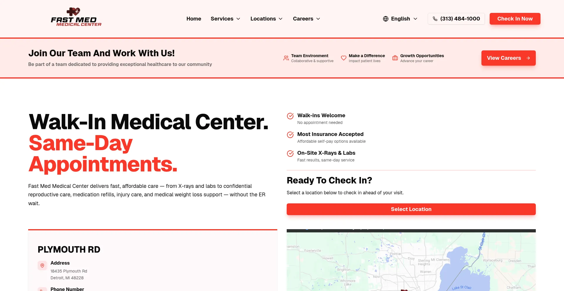 Same-day medical center and women's health services in Detroit. Walk-ins welcome. On-site X-rays, labs, STD testing, weight loss programs, and more. Call (313) 484-1000.