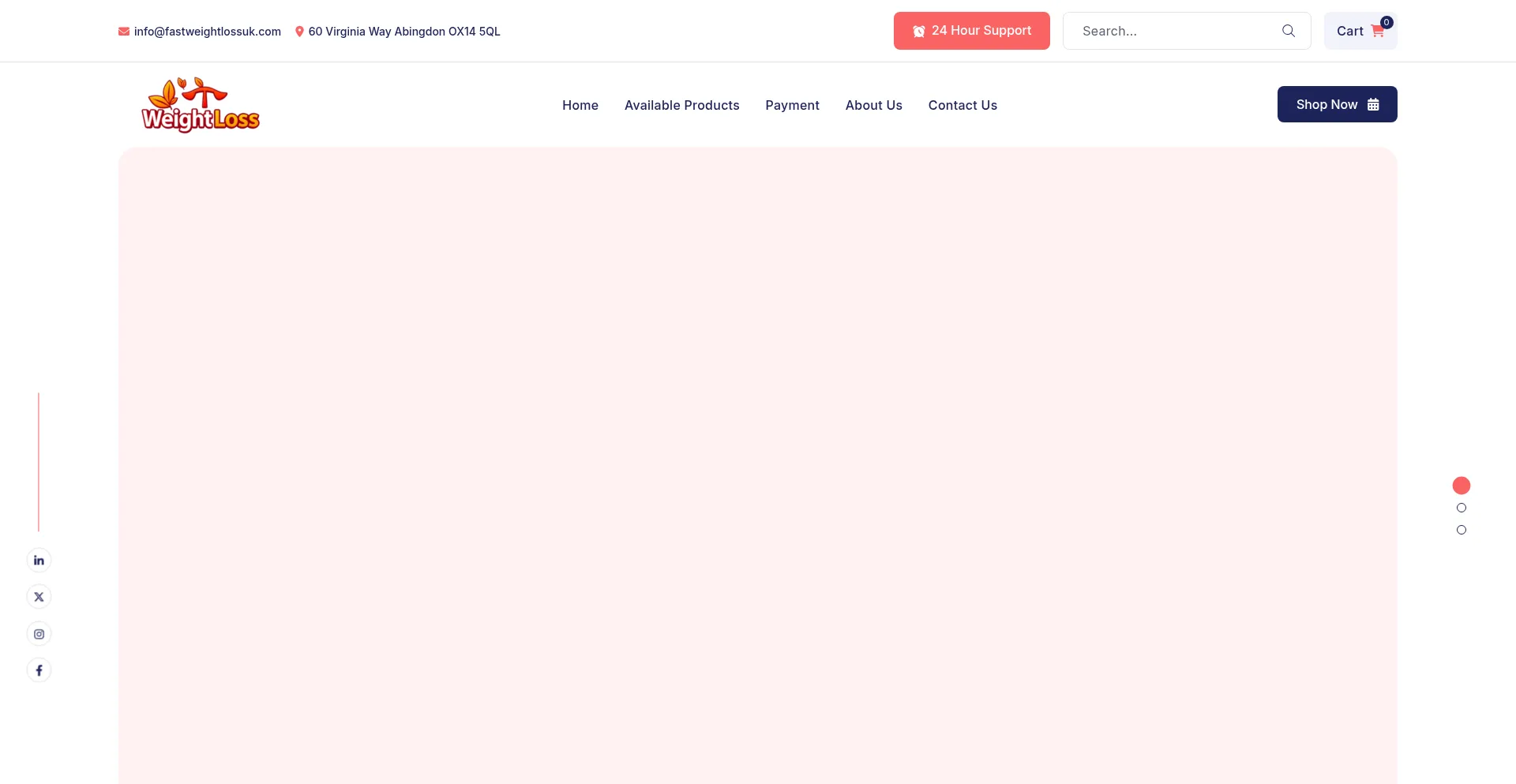 Analysis reveals that fastweightlossuk.com displays social media icons or links that do not connect to legitimate social media profiles. This deceptive practice is commonly employed to create false legitimacy and represents a significant indicator of fraudulent intent requiring immediate caution.