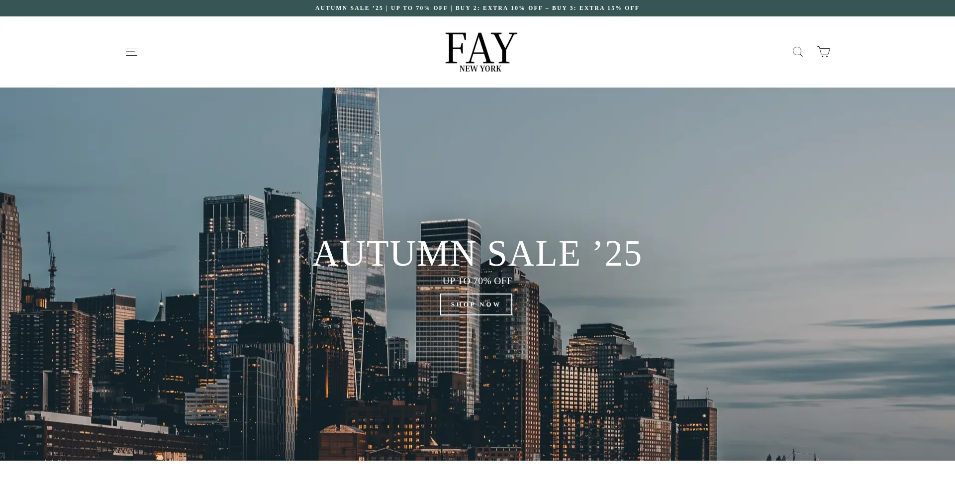 Our analyzer determines that website fay-newyork.com is using Shopify CMS. Shopify is a popular e-commerce platform, powering around 4.4% of websites globally.