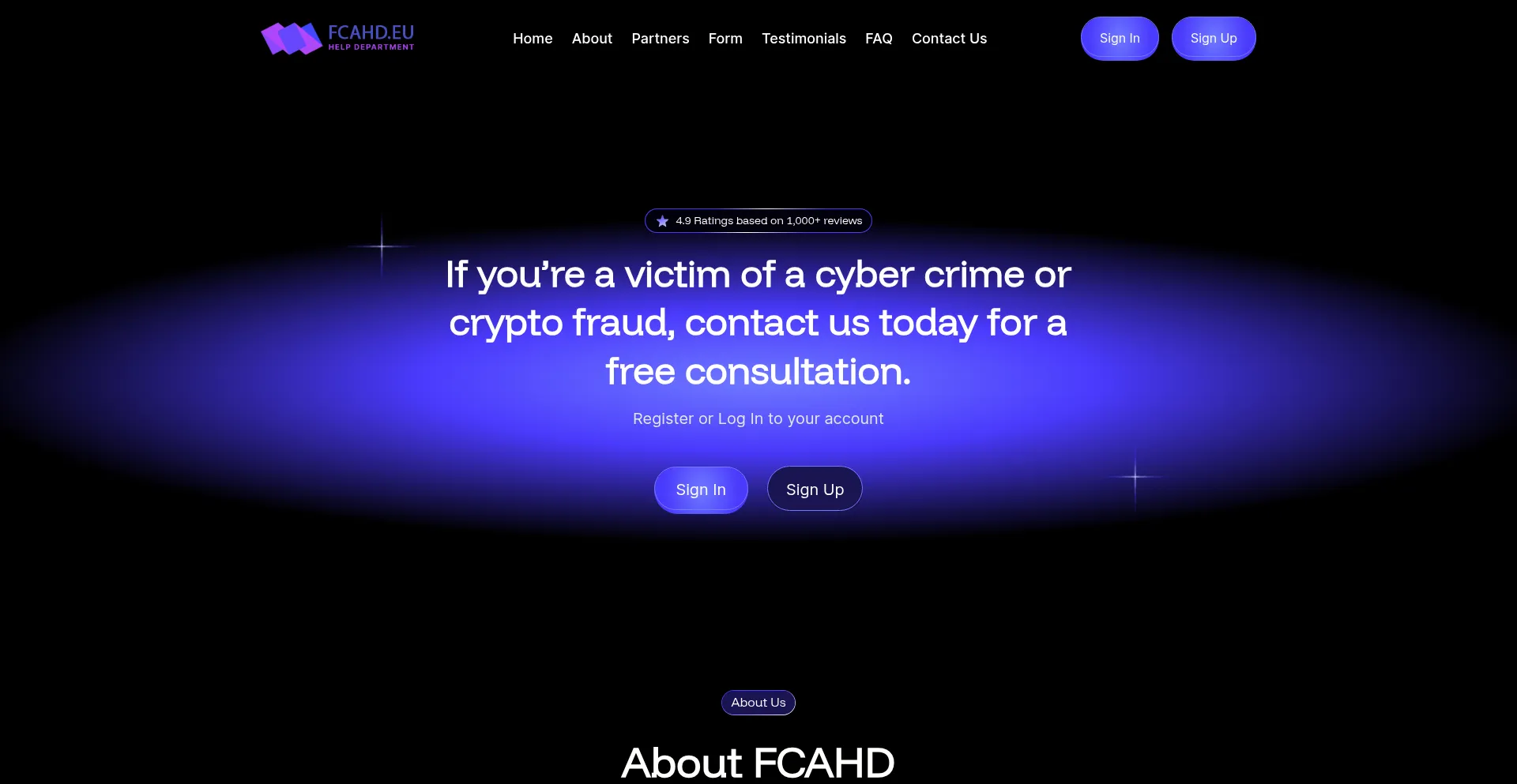 The website fcahd.eu advertises fund recovery services for lost or stolen assets. While some operate on contingency fee structures, others may require upfront payments, which can indicate fraudulent operations. Verify credentials and regulatory compliance before engaging such services.