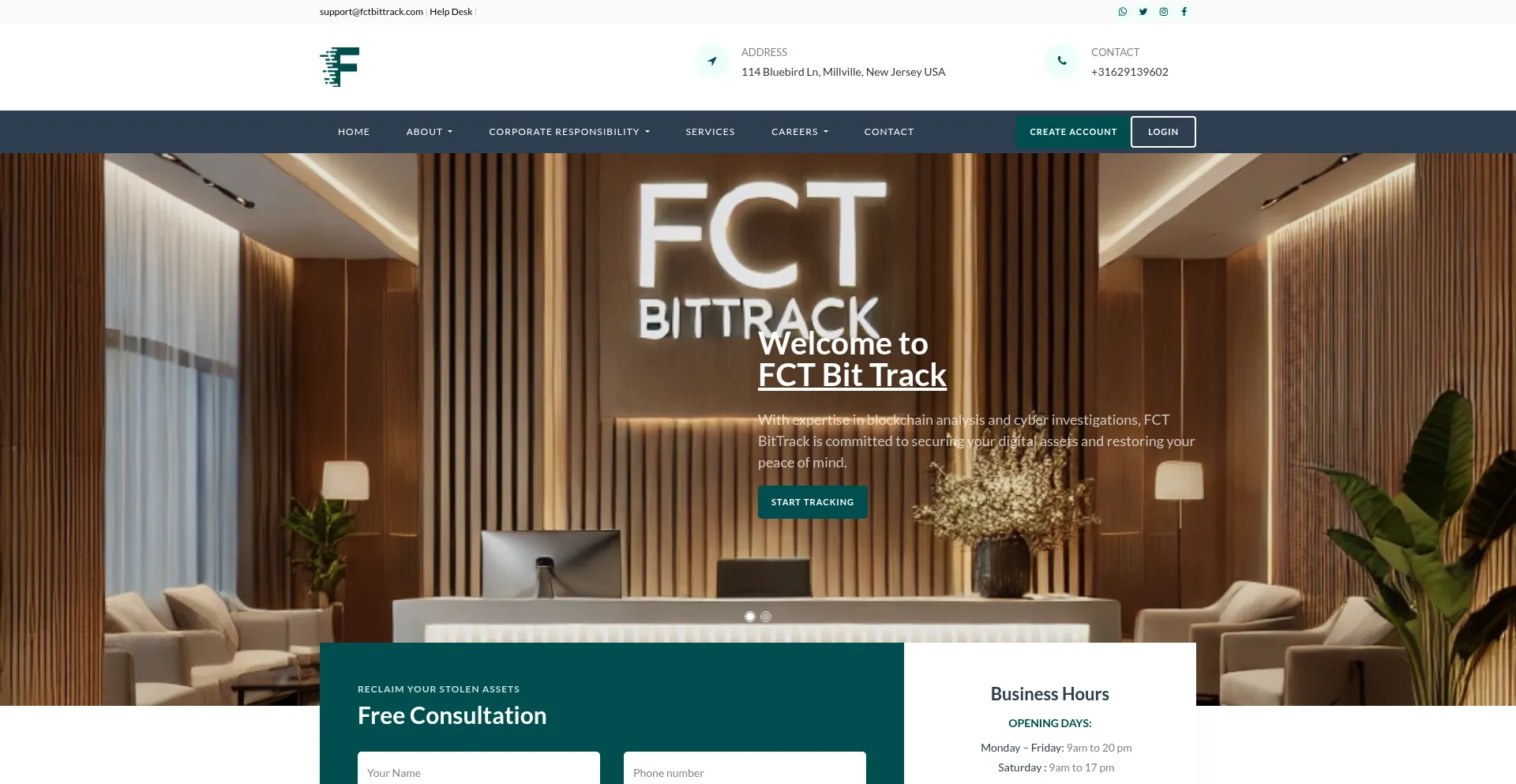 The website fctbittrack.com advertises fund recovery services for lost or stolen assets. While some operate on contingency fee structures, others may require upfront payments, which can indicate fraudulent operations. Verify credentials and regulatory compliance before engaging such services.