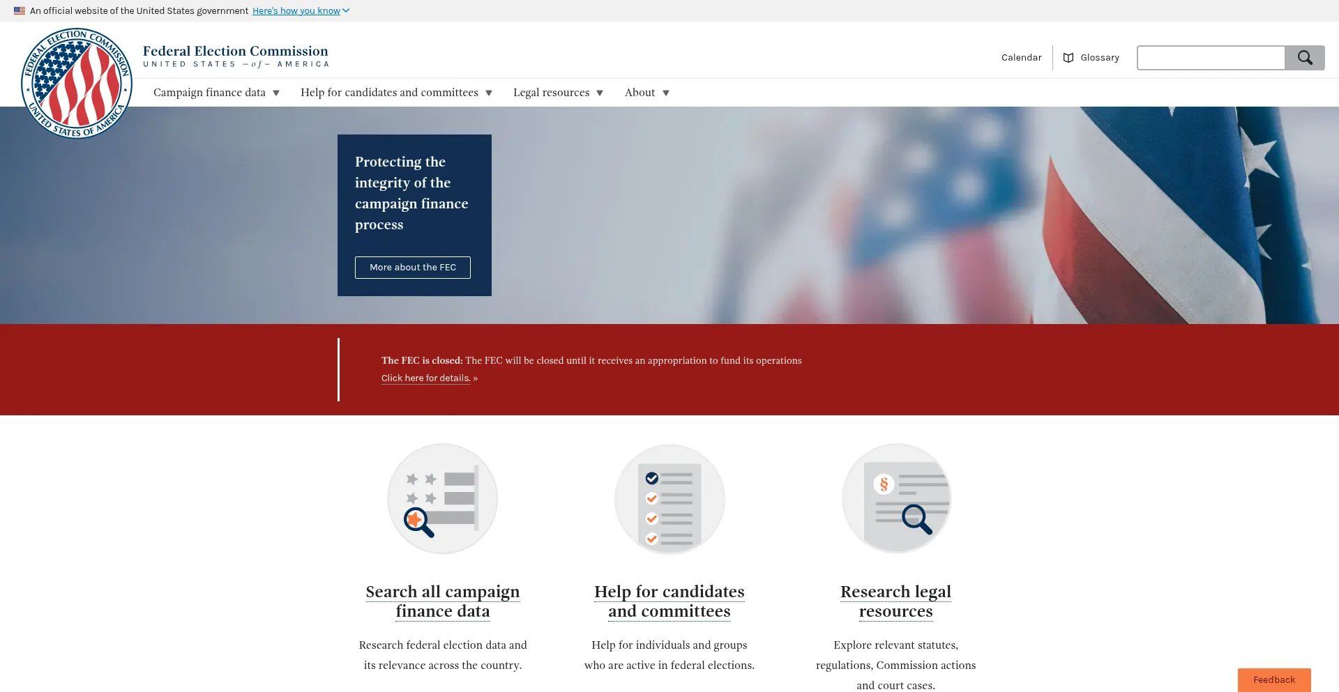 Find what you need to know about the federal campaign finance process. Explore legal resources, campaign finance data, help for candidates and committees, and more.